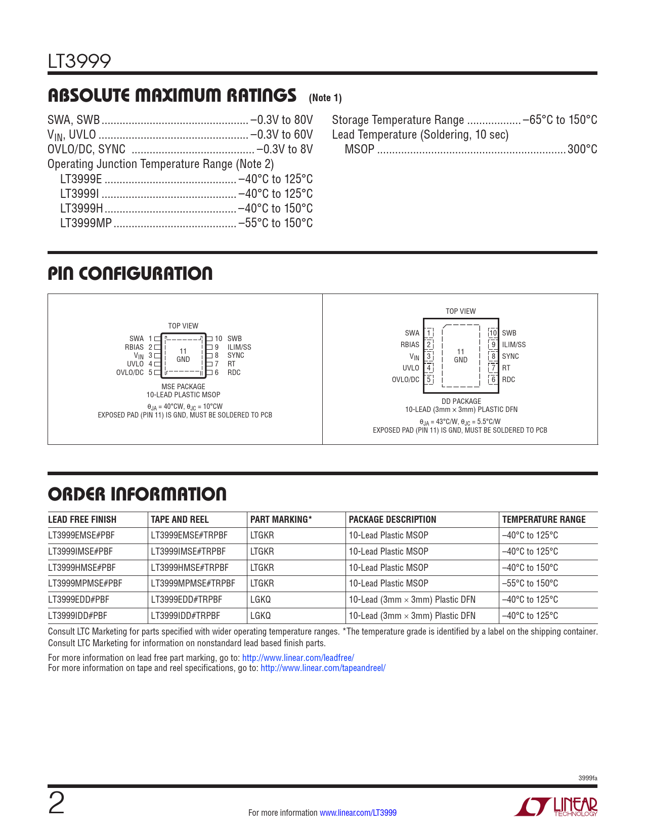 Datasheet LT3999 (Analog Devices) - 2
