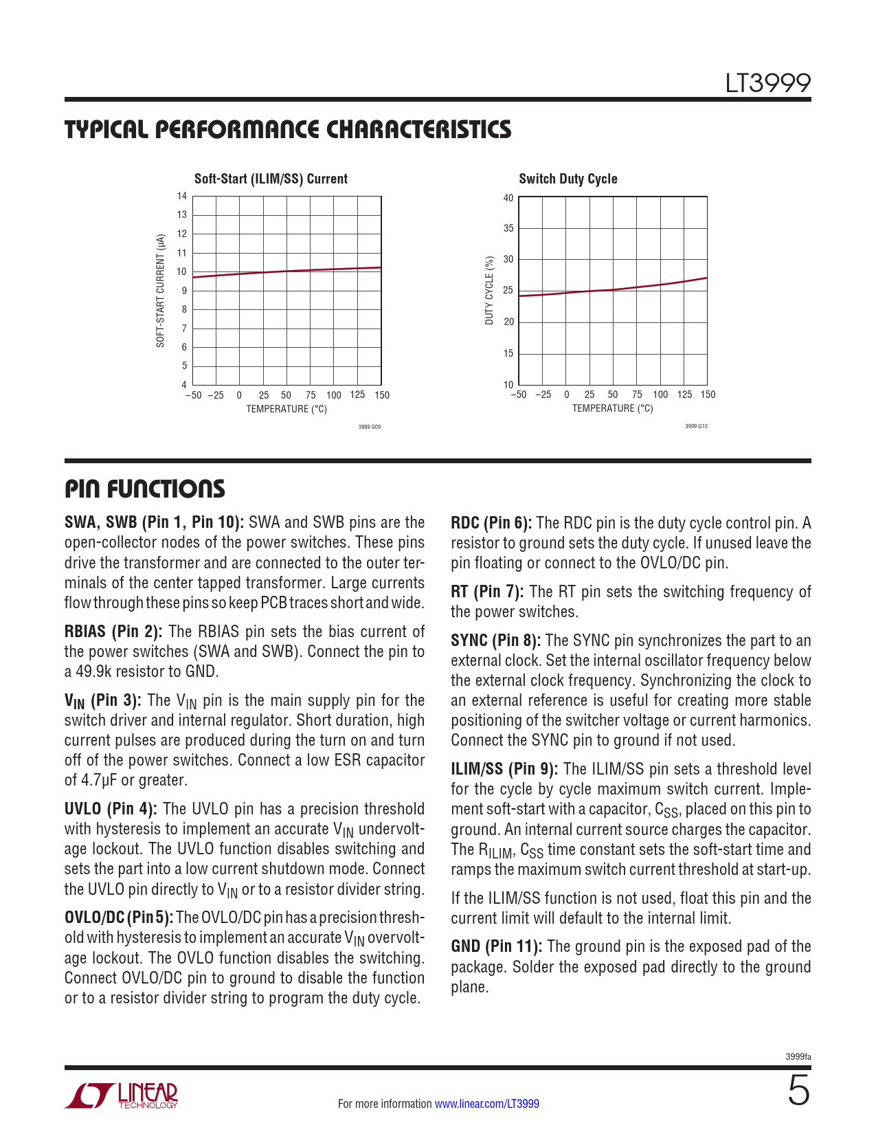 TYPICAL PERFORMANCE CHARACTERISTICS Soft-Start (ILIM/SS) Current Switch Duty Cycle PIN FUNCTIONS SWA, SWB (Pin 1, Pin 10):