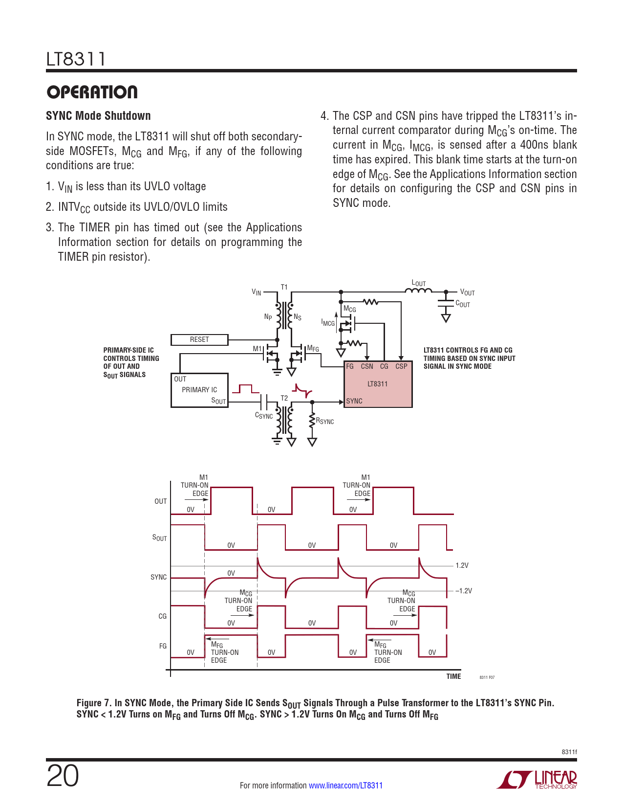 Pages / Page48 / 20 — OPERATION. SYNC Mode Shutdown. PRIMARY-SIDE IC. LT8311 CONTROLS FG AND …