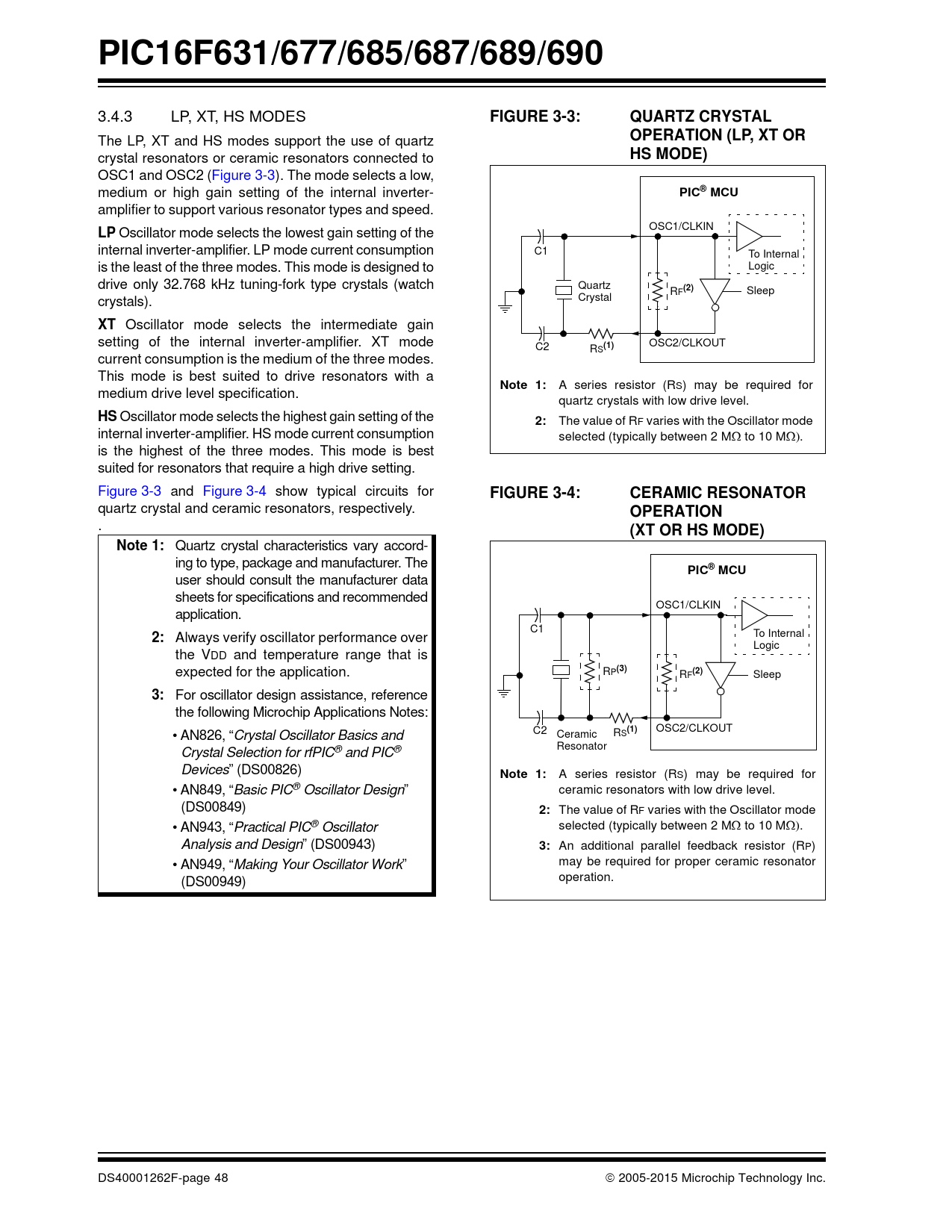 Pages / Page298 / 48 — PIC16F631/677/685/687/689/690. 3.4.3 LP, XT, HS MODES FIGURE 3-3: QUARTZ …