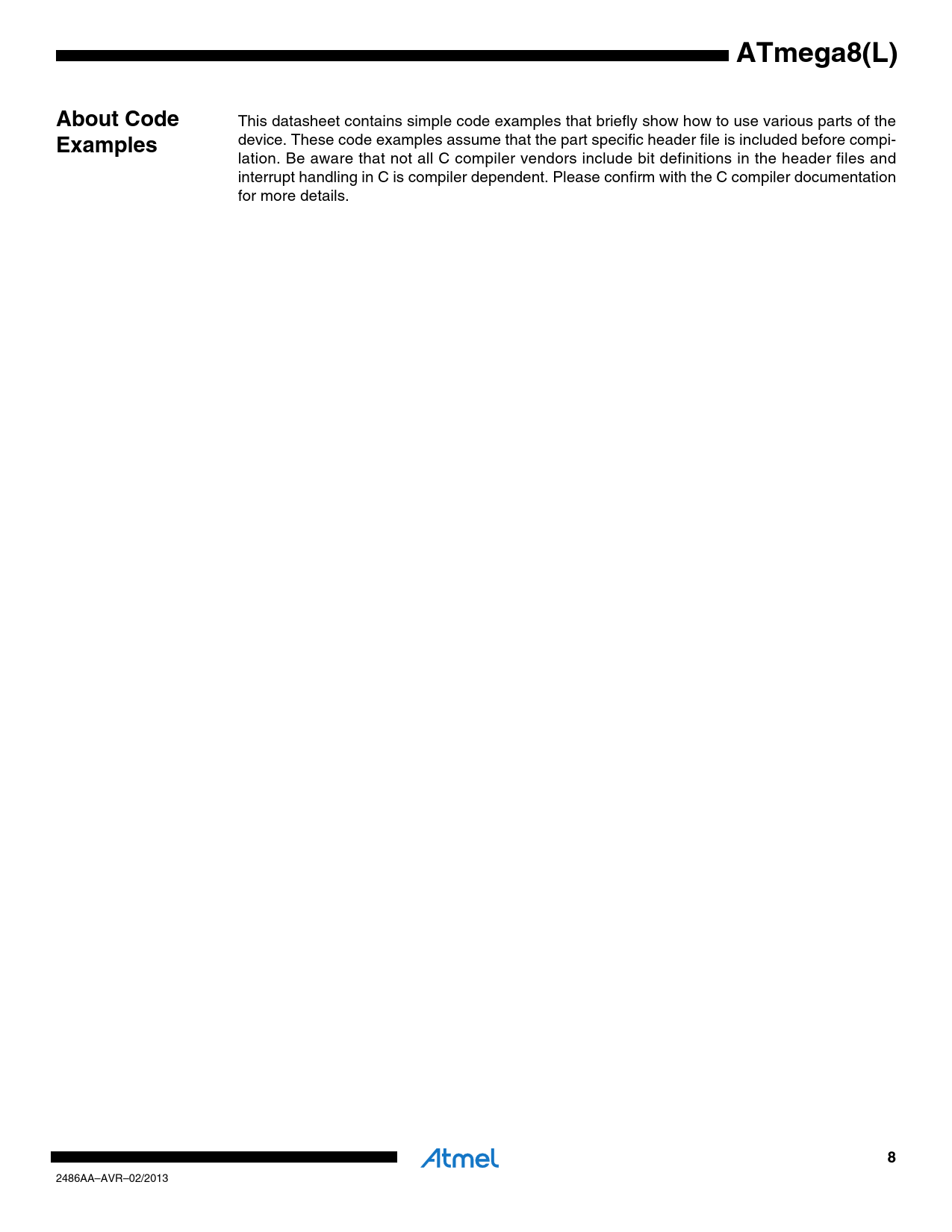Pages / Page331 / 8 — ATmega8(L). About Code. Examples