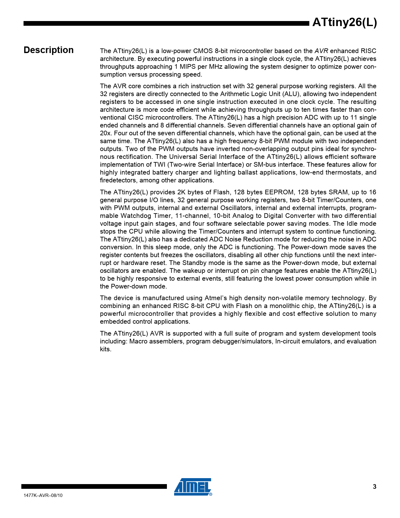 Pages / Page182 / 3 — ATtiny26(L). Description