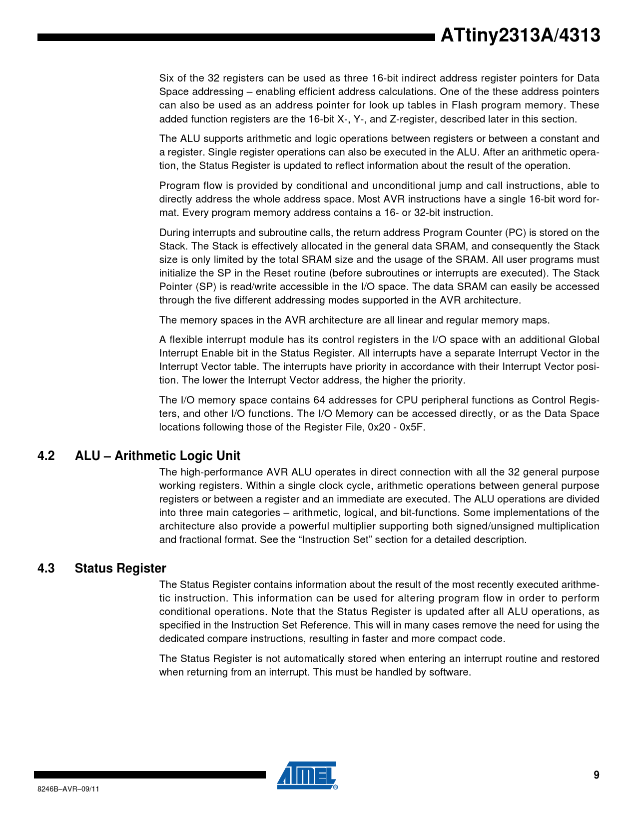 Pages / Page274 / 9 — ATtiny2313A/4313. 4.2. ALU – Arithmetic Logic Unit. 4.3. Status Register