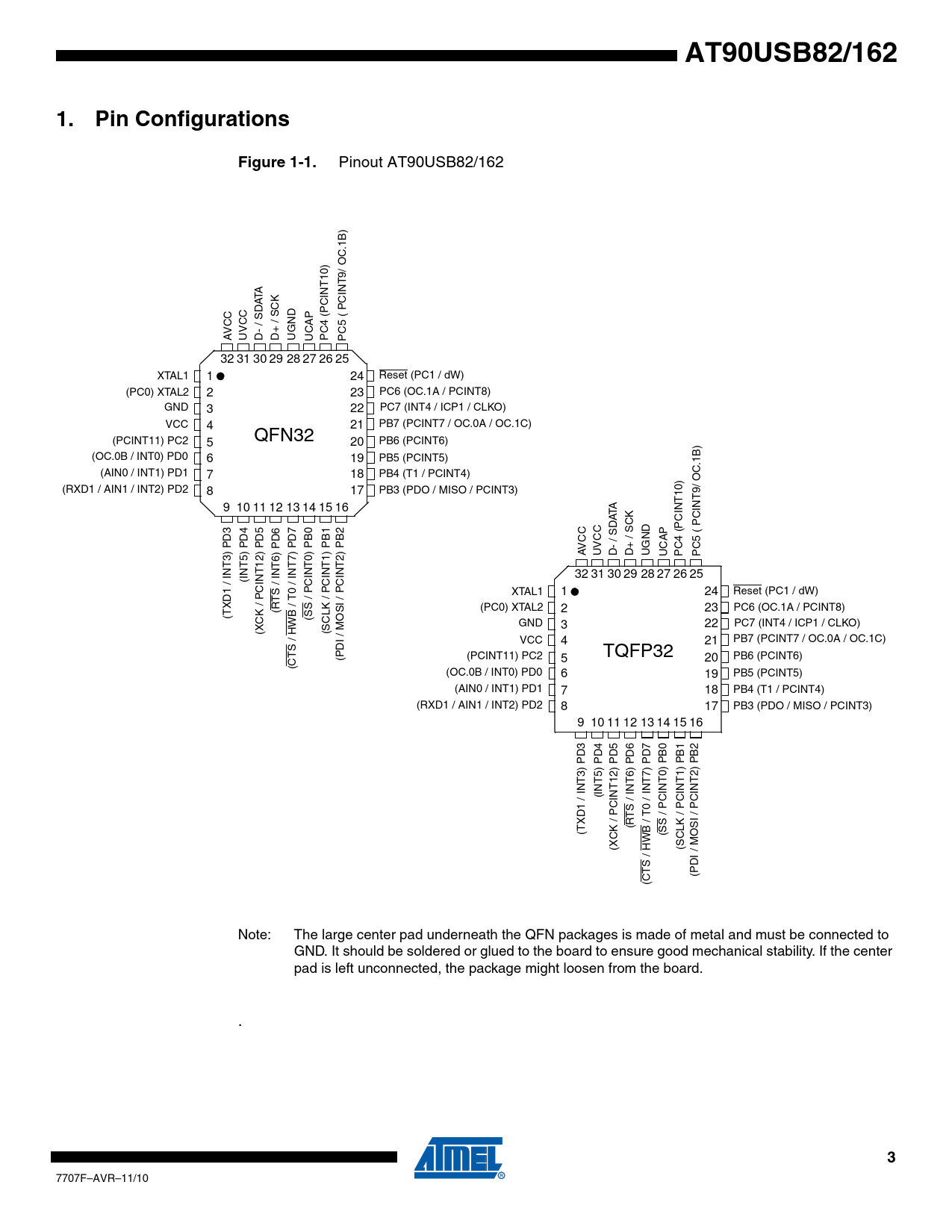 Pages / Page307 / 3 — AT90USB82/162. Pin Configurations. Figure 1-1
