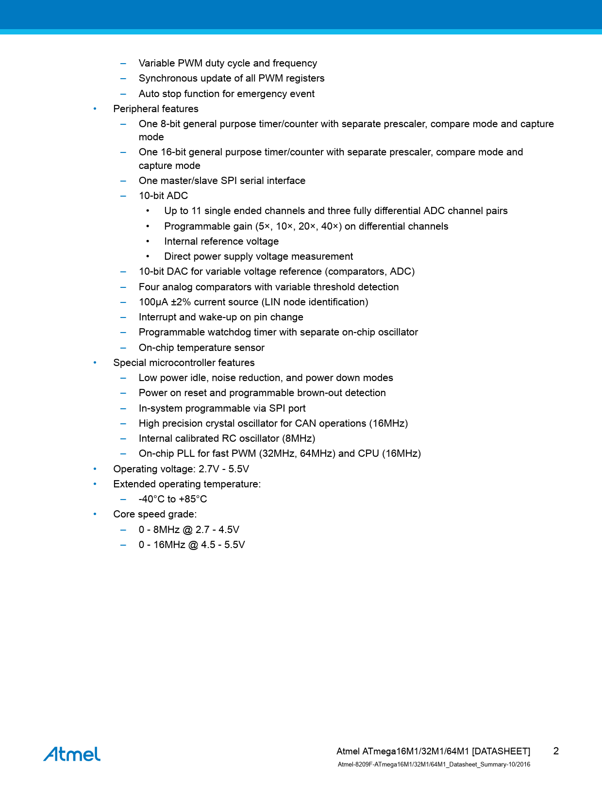 Datasheet ATmega16M1, ATmega32M1, ATmega64M1 - Summary (Atmel) - 2