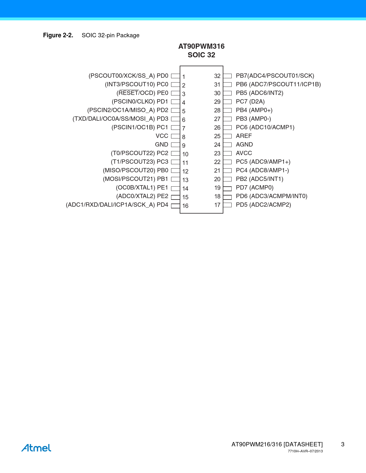 | Pages / Page | 344 / 3 — Figure 2-2. AT90PWM316. SOIC 32 |
