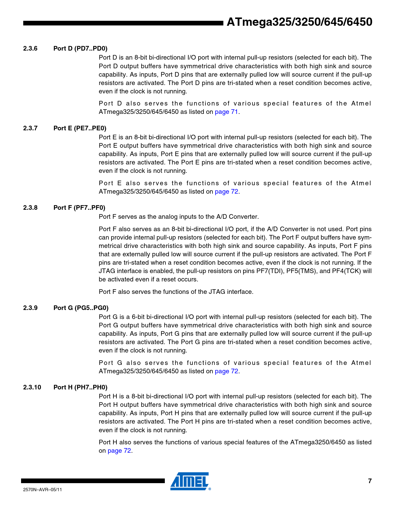 ATmega325/3250/645/6450 2.3.6 Port D (PD7..PD0) 2.3.7 Port E (PE7..PE0) 2.3.8 Port F (PF7..PF0) 2.3.9 Port G (PG5..PG0) 2.3.10