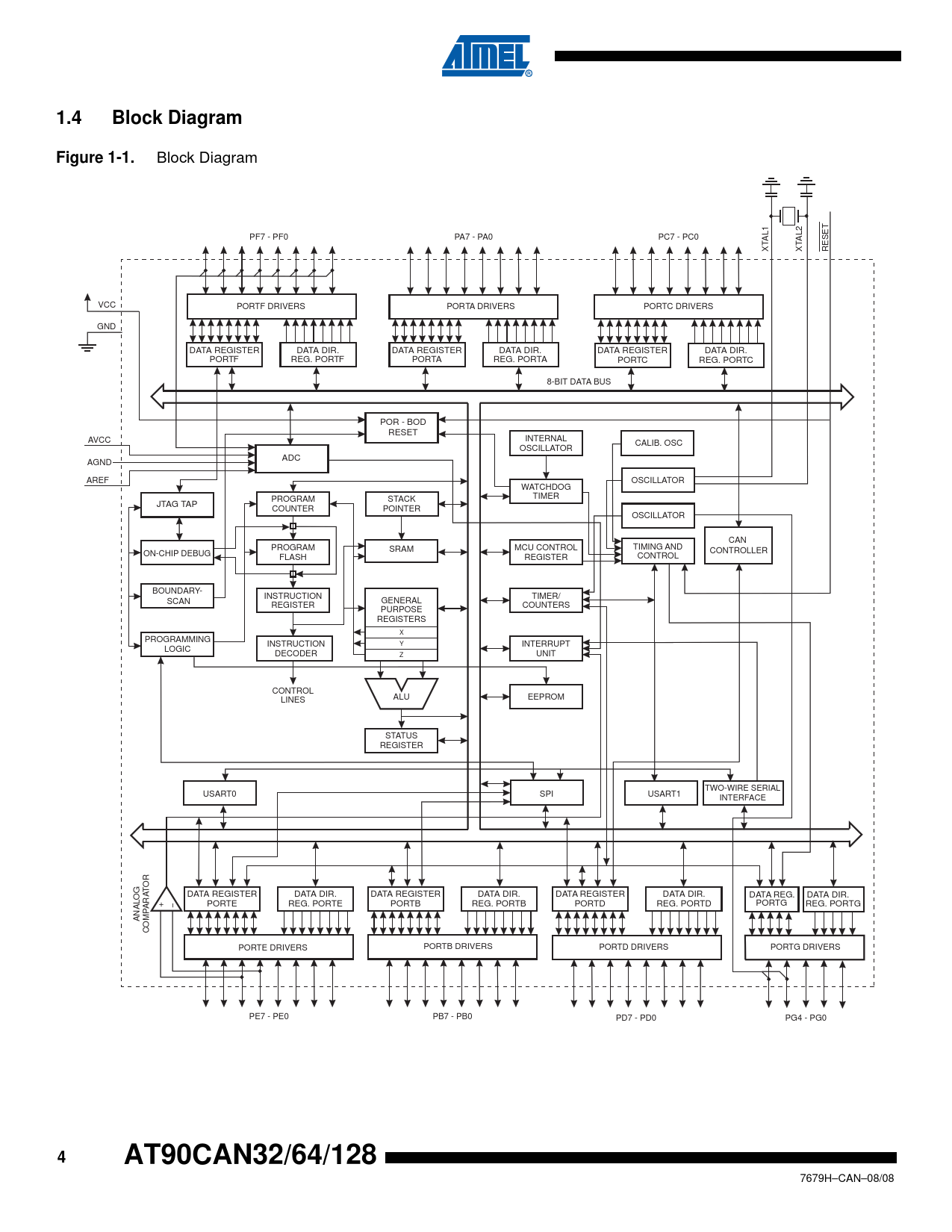 1.4. Block Diagram. Figure 1-1. AT90CAN32/64/128