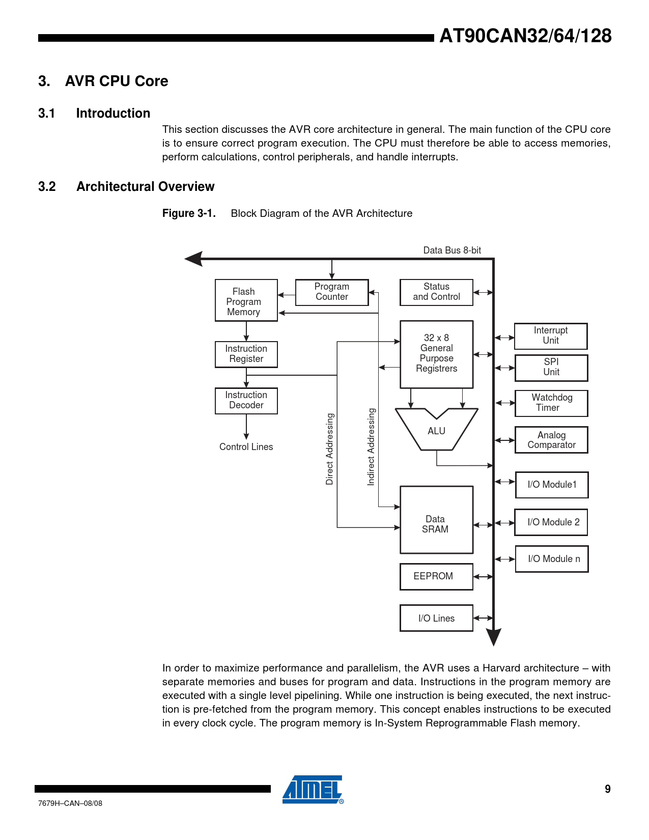 AT90CAN32/64/128 3. AVR CPU Core 3.1 Introduction