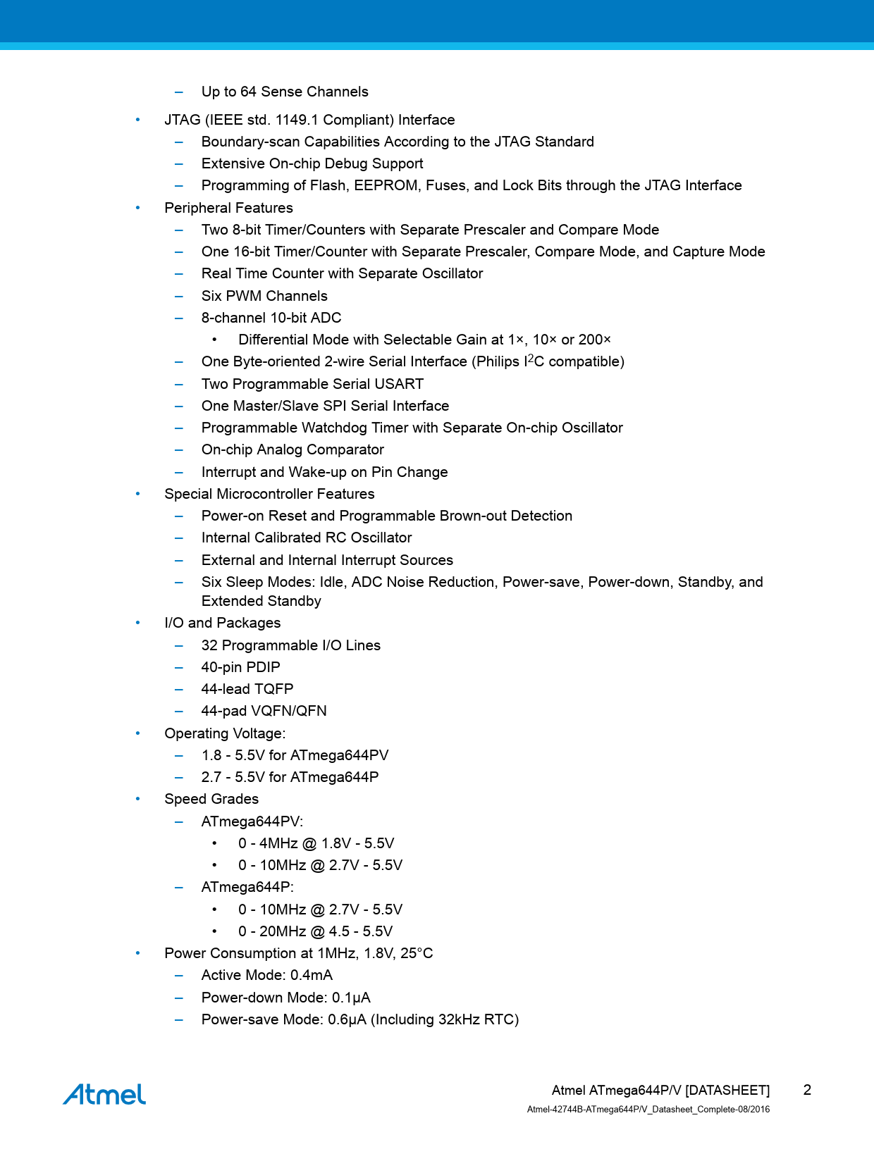 Datasheet ATmega644P, ATmega644V - Complete (Atmel) - 2