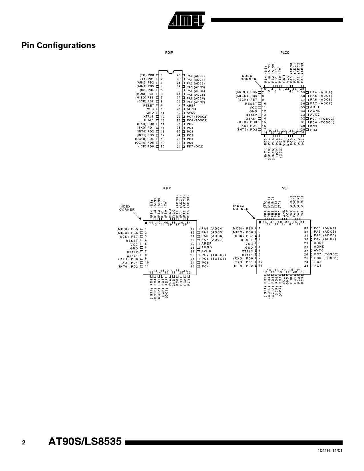 Pages / Page127 / 2 — Pin Configurations. AT90S/LS8535