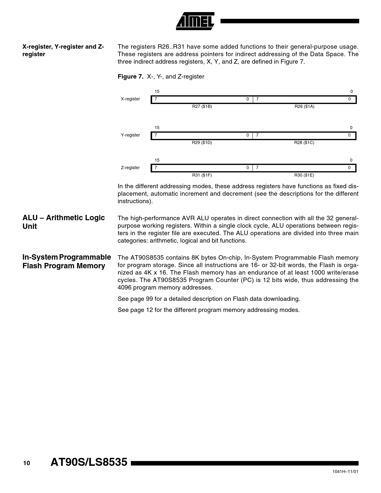 X-register, Y-register and Z-. register. Figure 7. ALU – Arithmetic Logic. Unit. In-System Programmable. Flash Program Memory