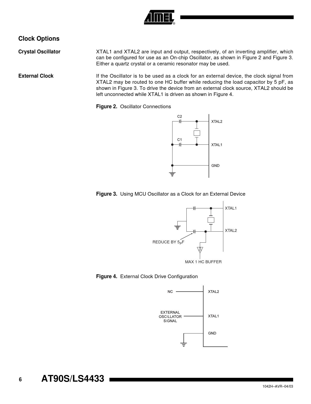 Clock Options. Crystal Oscillator. External Clock. Figure 2. Figure 3. Figure 4. AT90S/LS4433