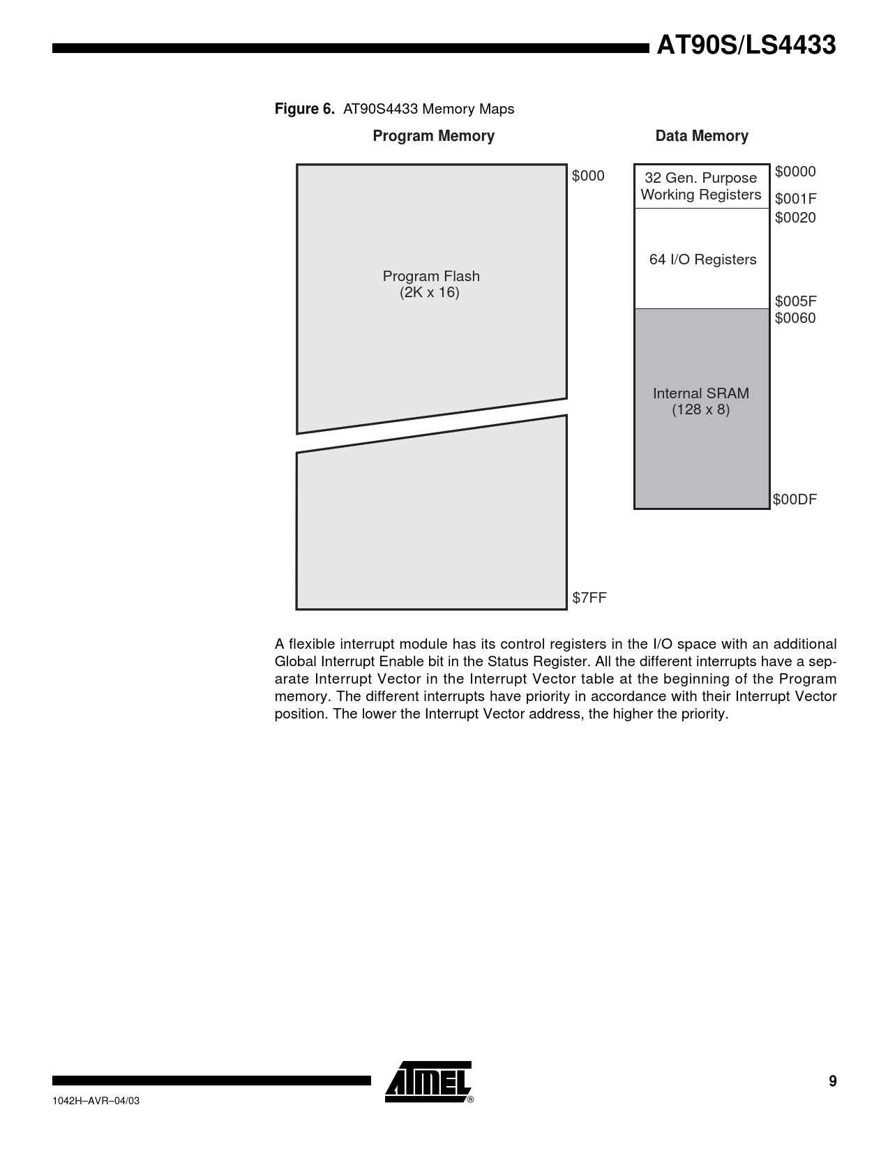 Pages / Page126 / 9 — AT90S/LS4433. Figure 6. Program Memory. Data Memory
