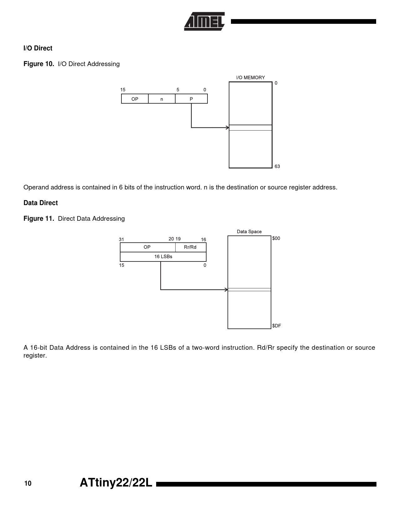 I/O Direct. Figure 10. Data Direct. Figure 11. ATtiny22/22L