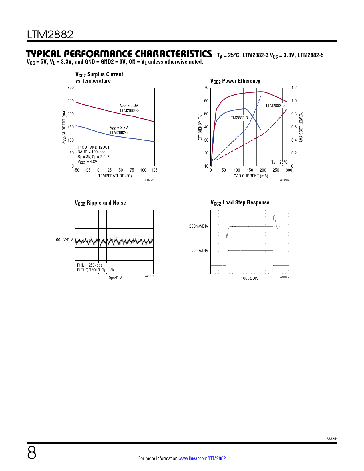 | Pages / Page | 22 / 8 — TYPICAL. PERFORMANCE CHARACTERISTICS TA = 25°C, LTM2882-3 VCC = 3.3V, … |