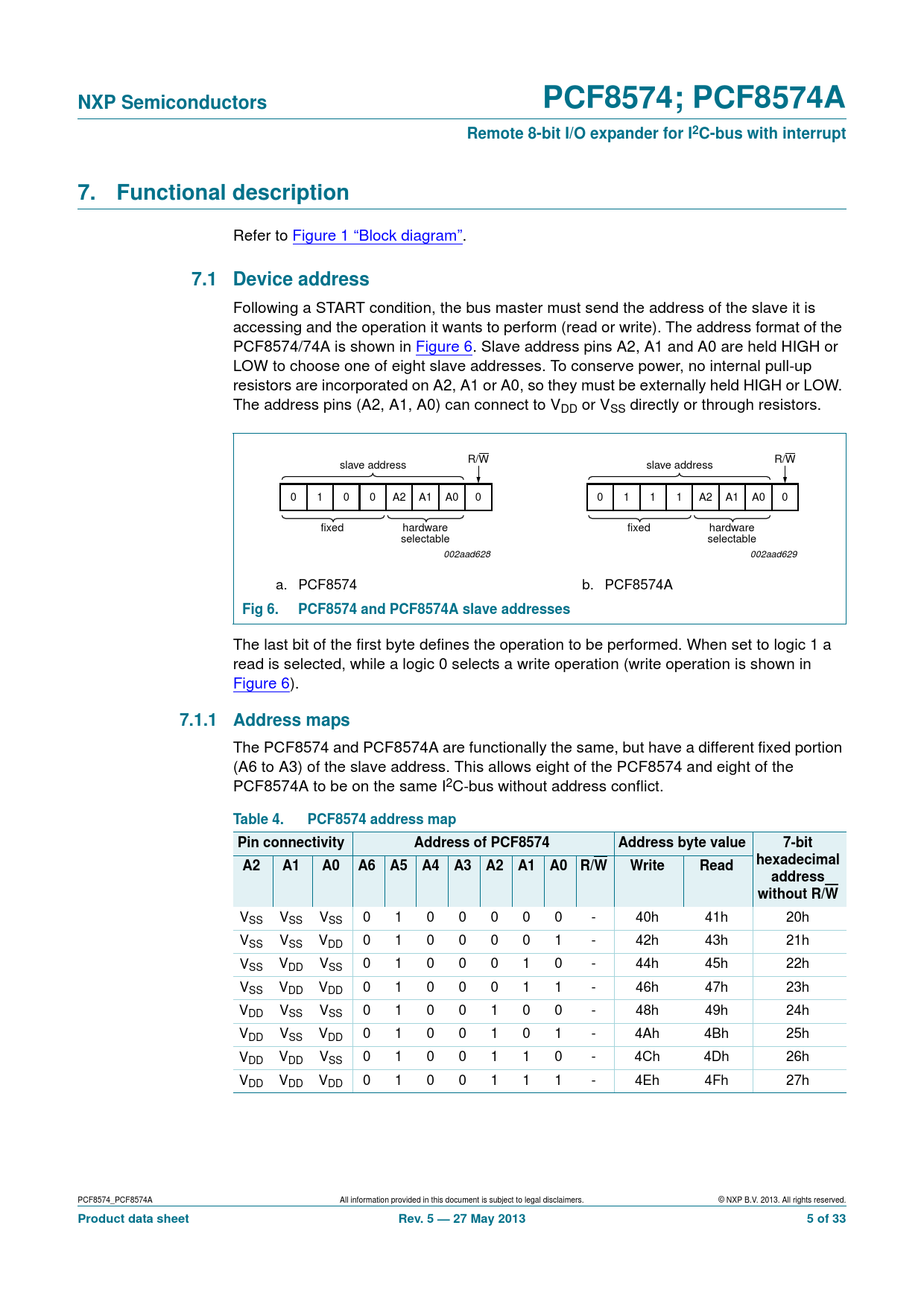 NXP Semiconductors PCF8574; PCF8574A Remote 8-bit I/O expander for I2C-bus with interrupt 7. Functional description