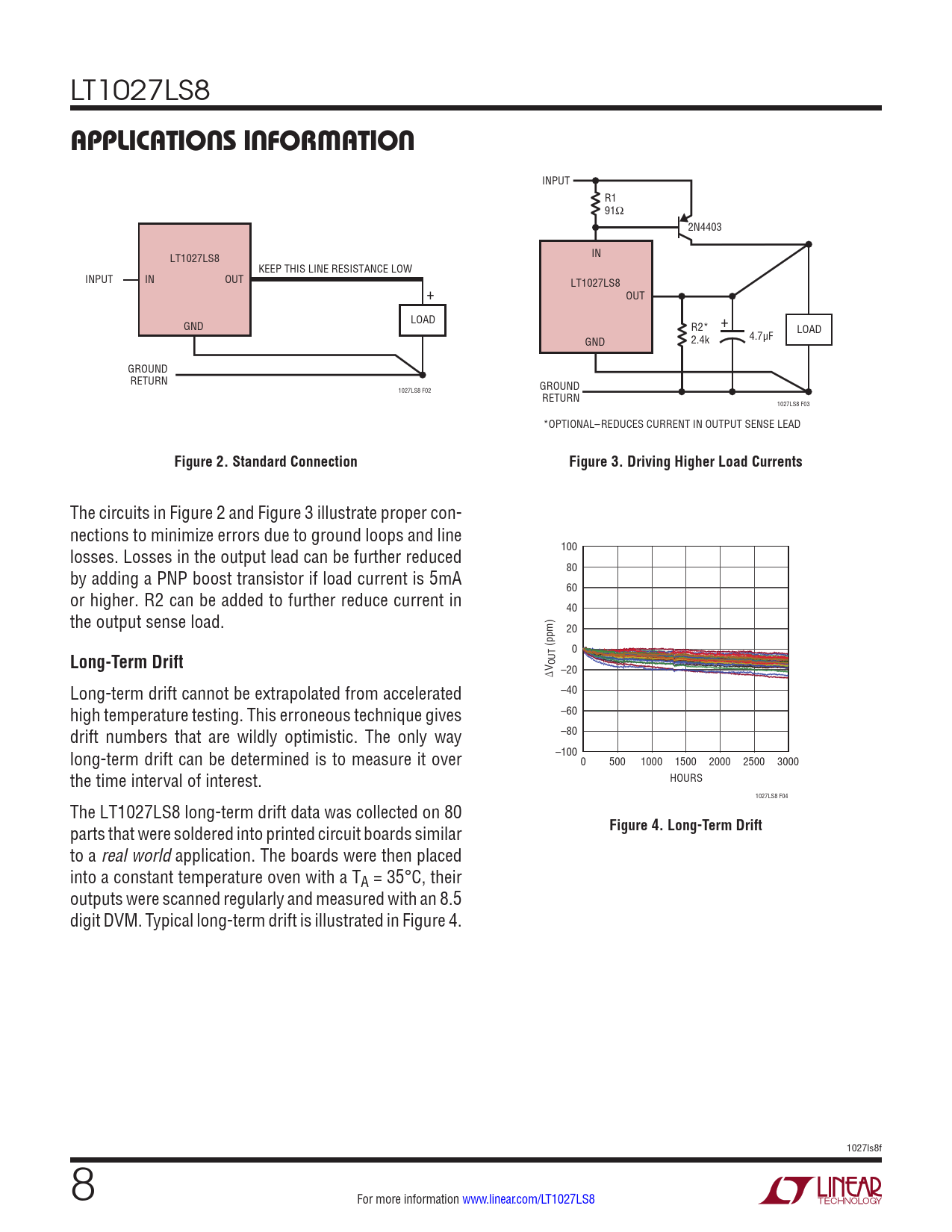 applicaTions inForMaTion Figure 2 Standard Connection Figure 3 Driving Higher Load Currents Long-Term Drift