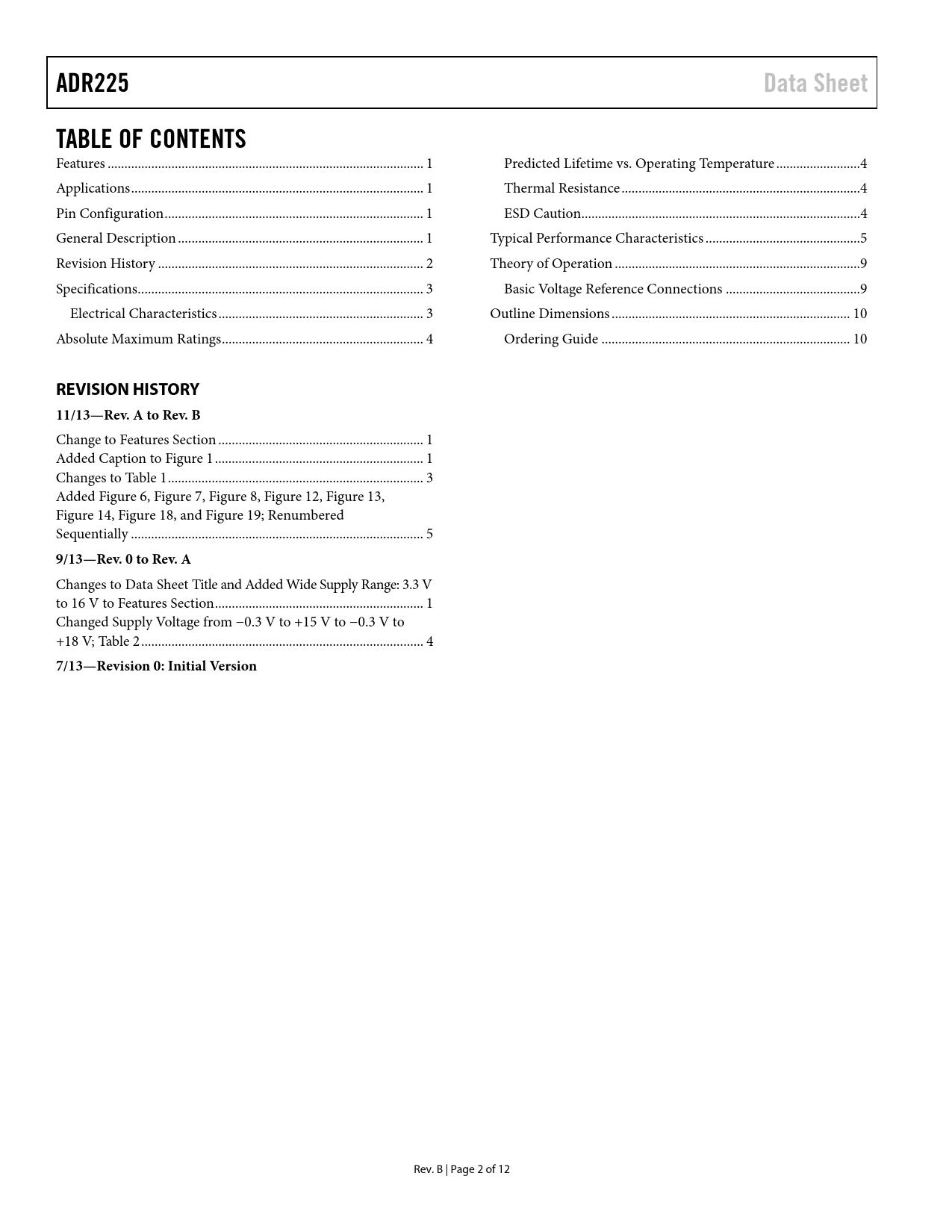Pages / Page12 / 2 — ADR225. Data Sheet. TABLE OF CONTENTS. REVISION HISTORY 11/13—Rev. A to …