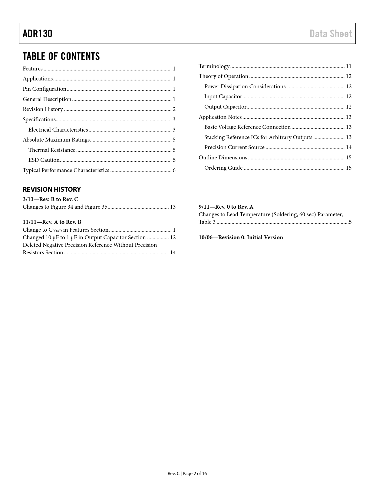 Pages / Page16 / 2 — ADR130. Data Sheet. TABLE OF CONTENTS. REVISION HISTORY 3/13—Rev. B to …