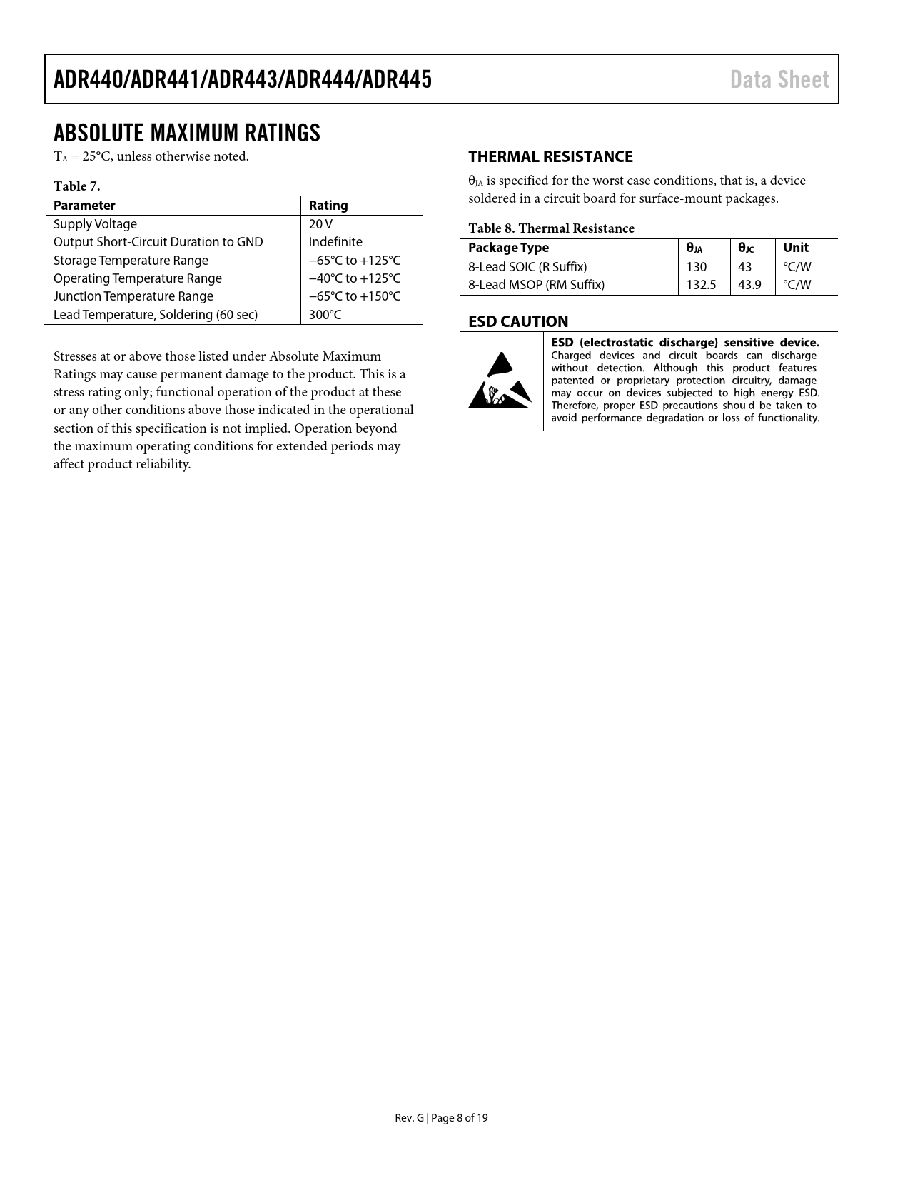 Pages / Page19 / 8 — ADR440/ADR441/ADR443/ADR444/ADR445. Data Sheet. ABSOLUTE MAXIMUM RATINGS. …