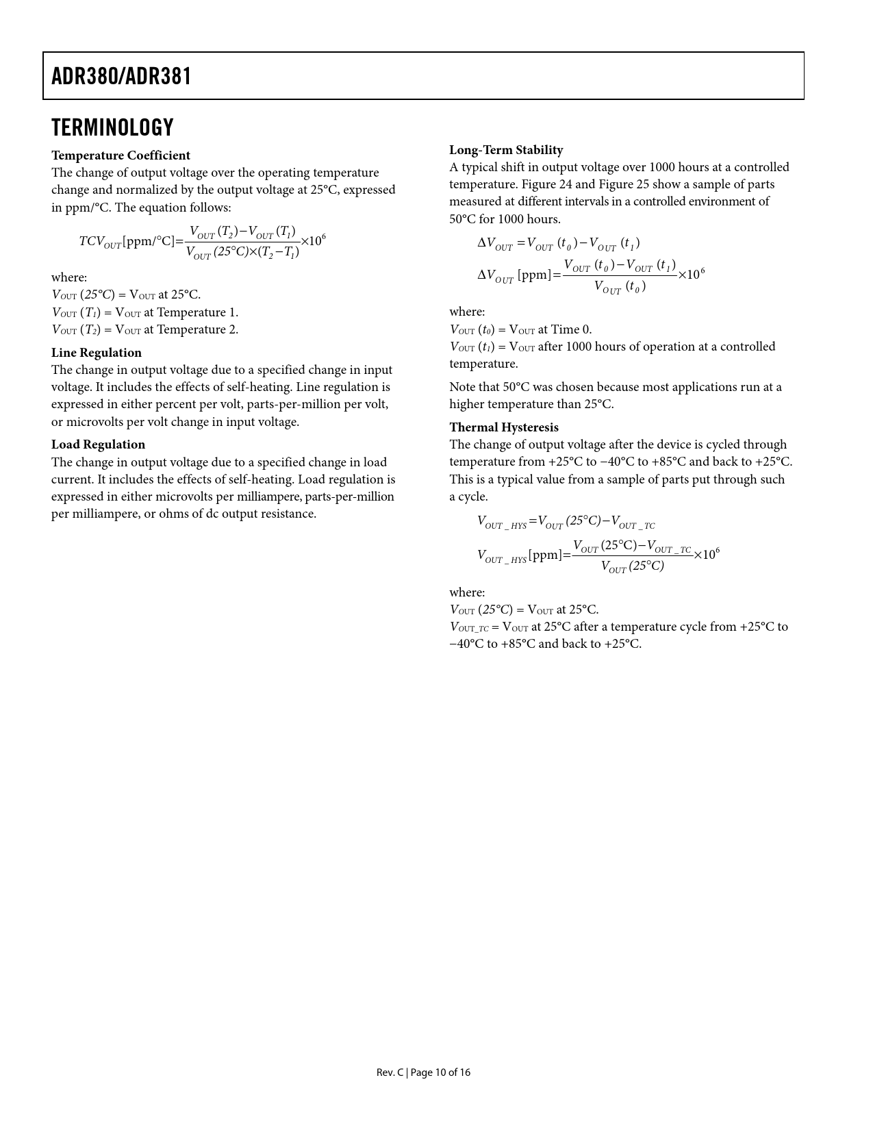 Pages / Page16 / 10 — Temperature Coefficient. Long-Term Stability. Line Regulation. Thermal …
