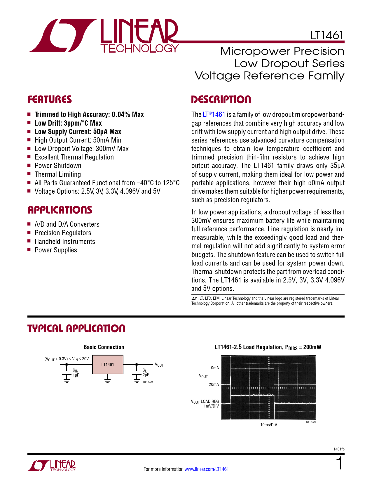 LT1461 Micropower Precision Low Dropout Series Voltage Reference Family
