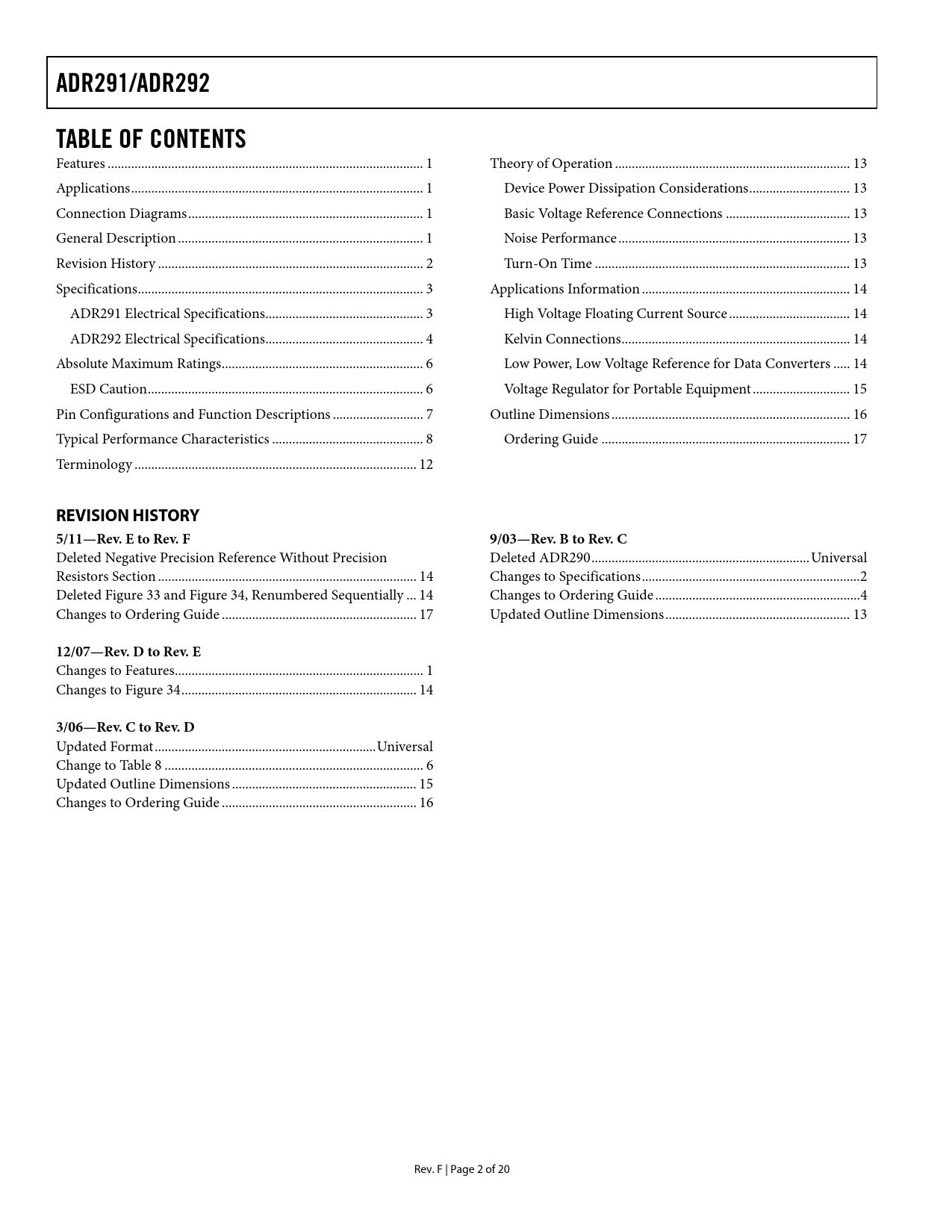 Pages / Page20 / 2 — ADR291/ADR292. TABLE OF CONTENTS. REVISION HISTORY. 5/11—Rev. E to Rev. …