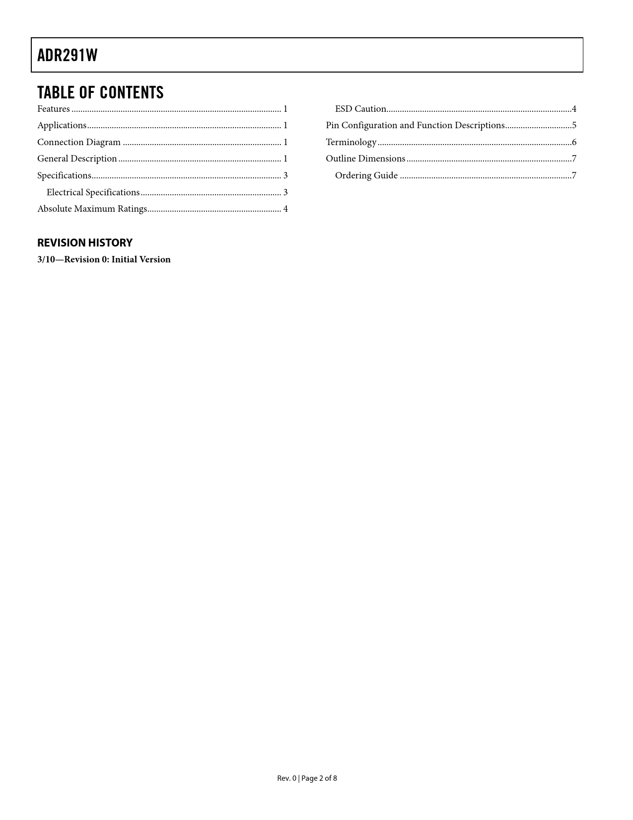 Pages / Page8 / 2 — ADR291W. TABLE OF CONTENTS. REVISION HISTORY. 3/10—Revision 0: Initial …