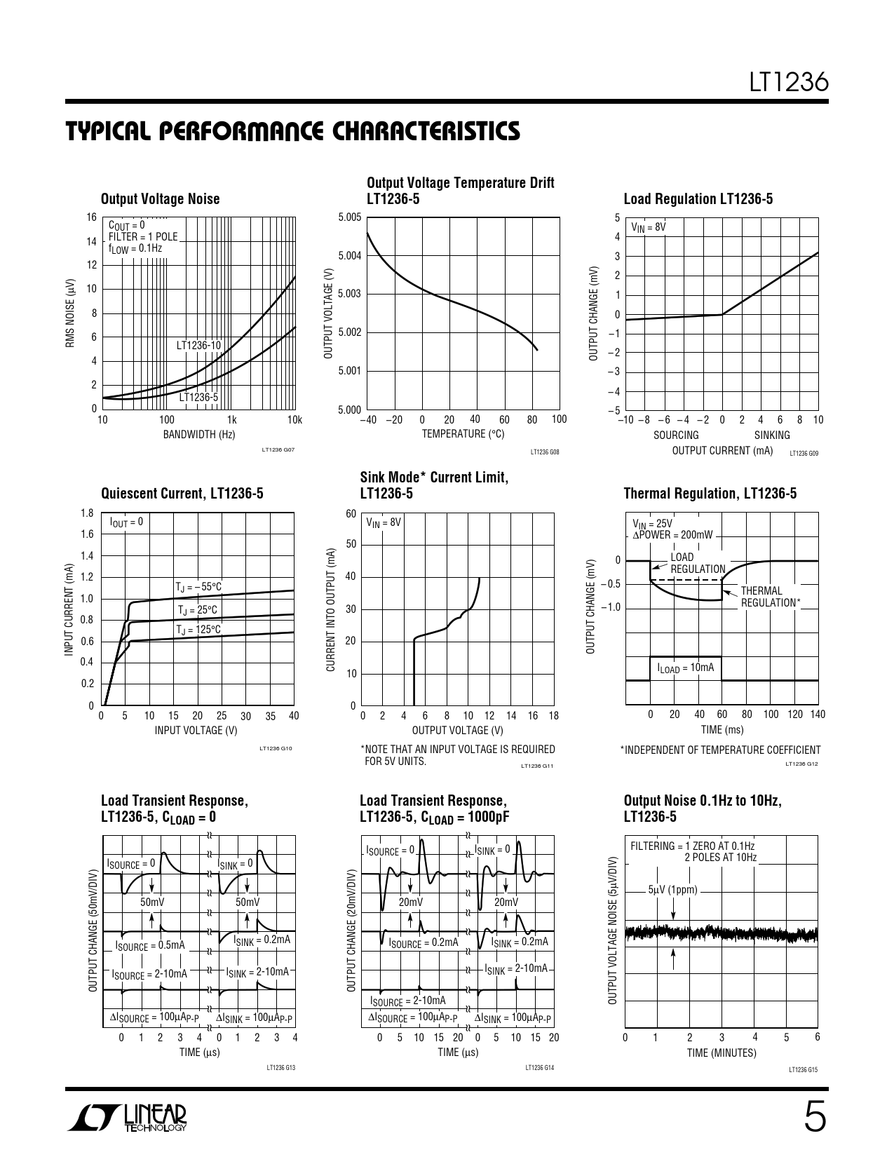 Sink Mode* Current Limit, Quiescent Current, LT1236-5 LT1236-5 Thermal Regulation, LT1236-5