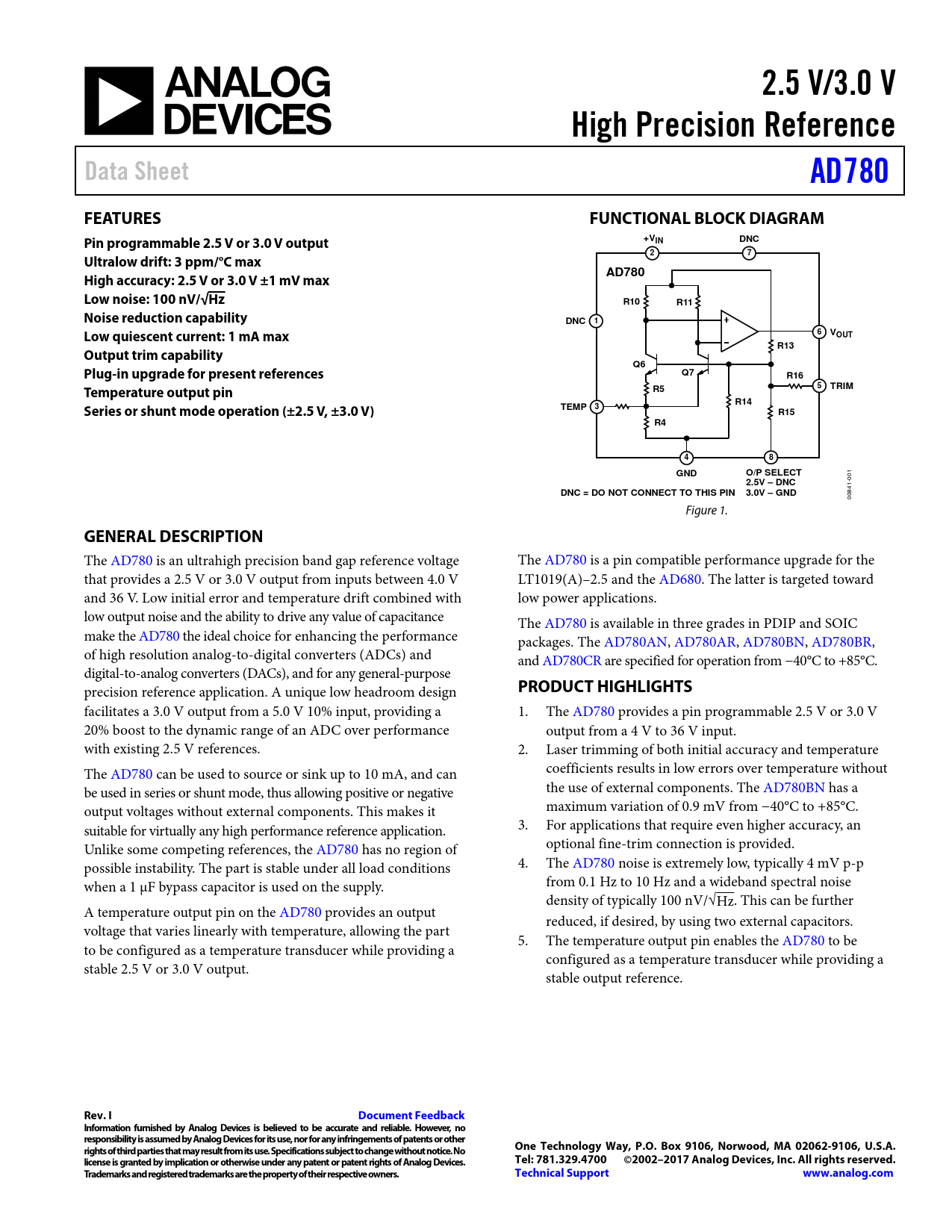 | Pages / Page | 12 / 1 — 2.5 V/3.0 V. High Precision Reference. Data Sheet. AD780. FEATURES. … |