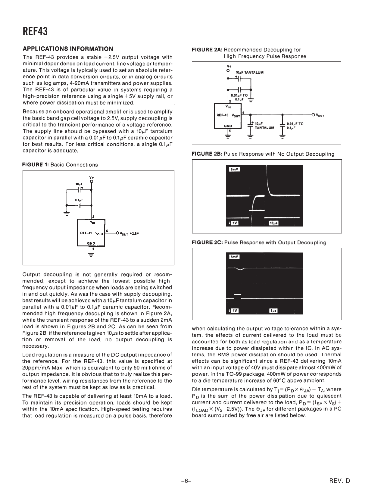 REF43 –6– REV. D Document Outline FEATURES GENERAL DESCRIPTION PIN CONFIGURATION ORDERING GUIDE SIMPLIFIED SCHEMATIC ABSOLUTE MAXIMUM RATINGS ELECTRICAL CHARACTERISTICS BURN-IN CIRCUIT OUTPUT VOLTAGE TRIM METHOD DICE CHARACTERISTICS WAFER TEST LIMITS TYPICAL PERFORMANCE CHARACTERISTICS APPLICATIONS INFORMATION GENERATING A –2.5V REFERENCE BOOST TRANSISTOR PROVIDES HIGH OUTPUT CURRENT LOW POWER CMOS DAC REFERENCE PRECISION CURRENT SOURCE TEMPERATURE MEASUREMENT OUTLINE DIMENSIONS Revision History