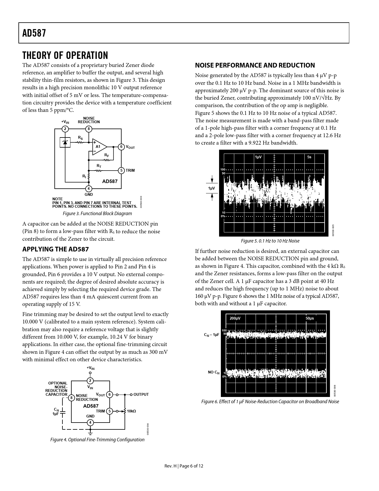 Pages / Page12 / 6 — AD587. THEORY OF OPERATION. NOISE PERFORMANCE AND REDUCTION. NOISE. …
