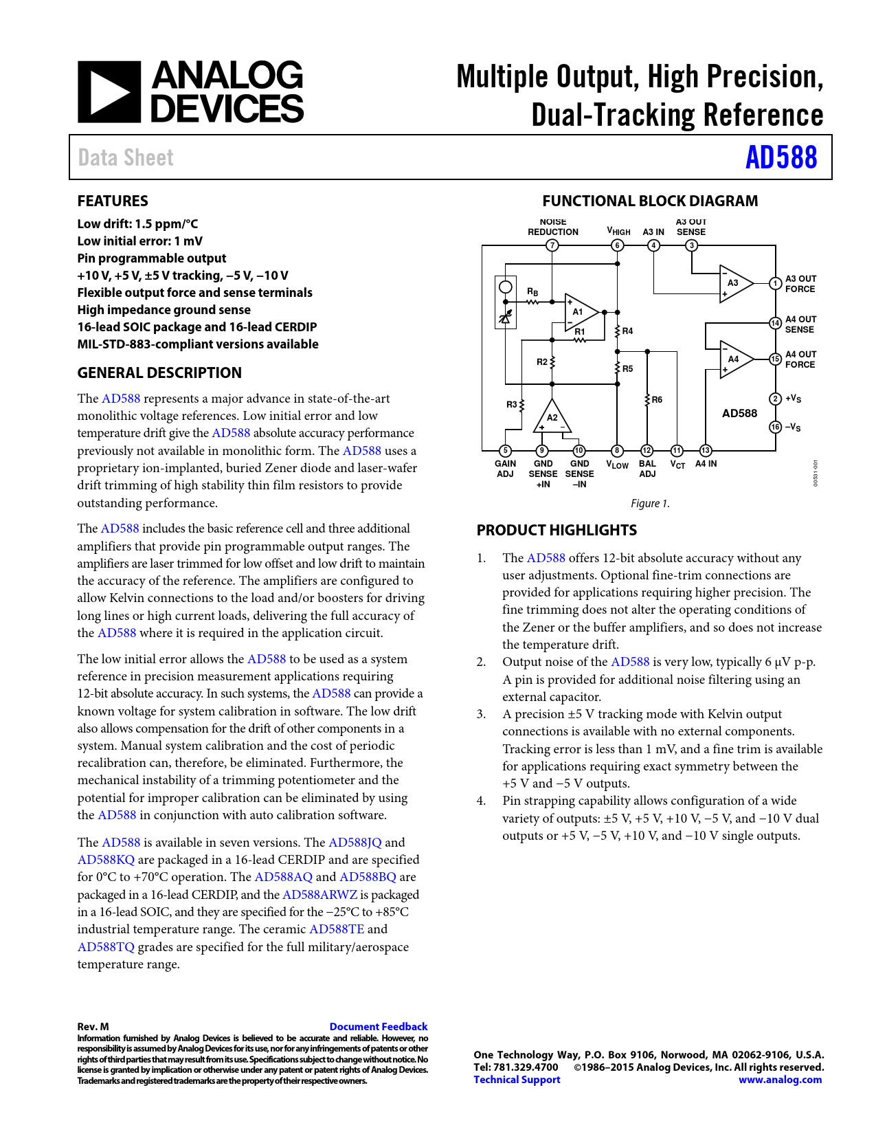 Multiple Output, High Precision,. Dual-Tracking Reference. Data Sheet. AD588. FEATURES. FUNCTIONAL BLOCK DIAGRAM