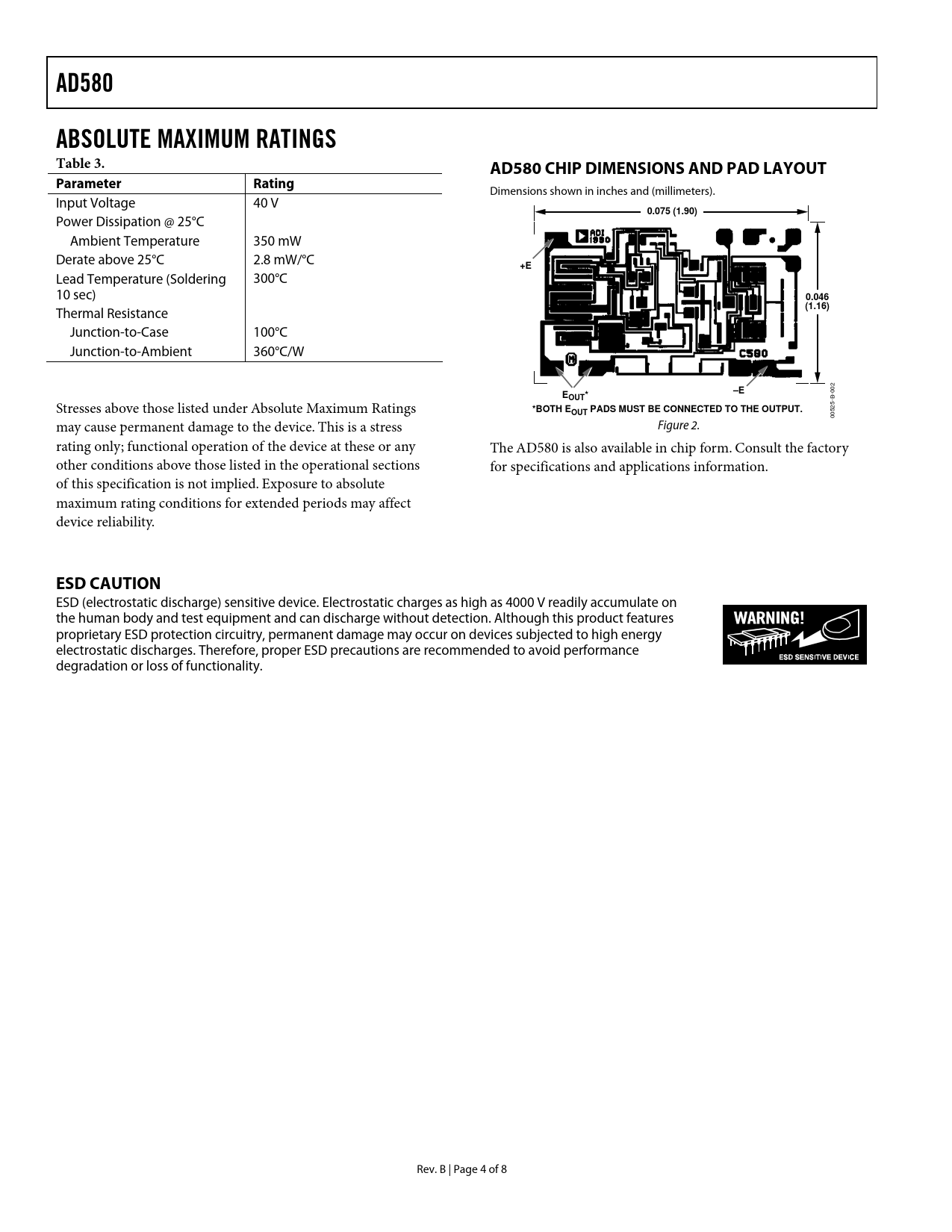 Pages / Page8 / 4 — AD580. ABSOLUTE MAXIMUM RATINGS Table 3. AD580 CHIP DIMENSIONS AND PAD …