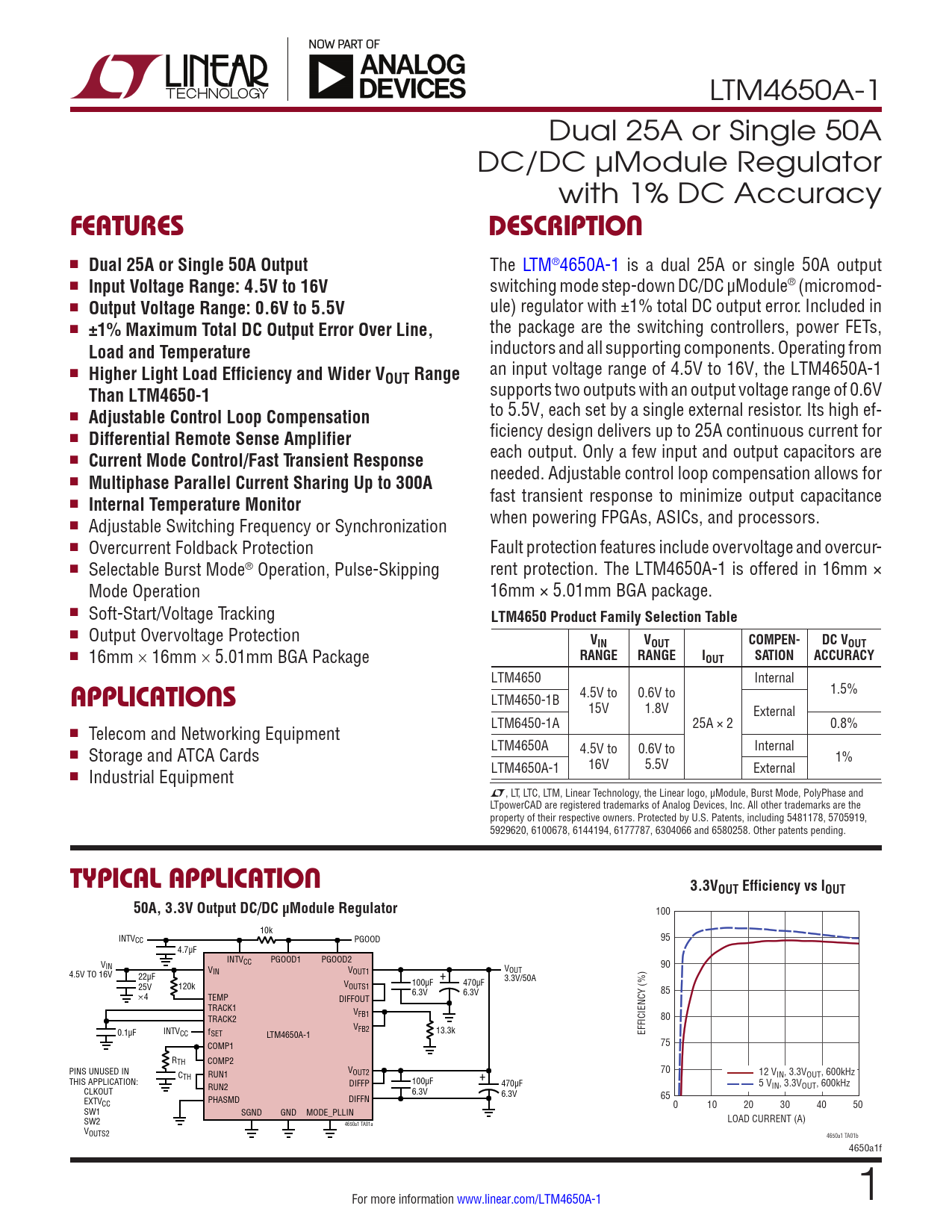 The LTM®4650A-1 is a dual 25A or single 50A output n