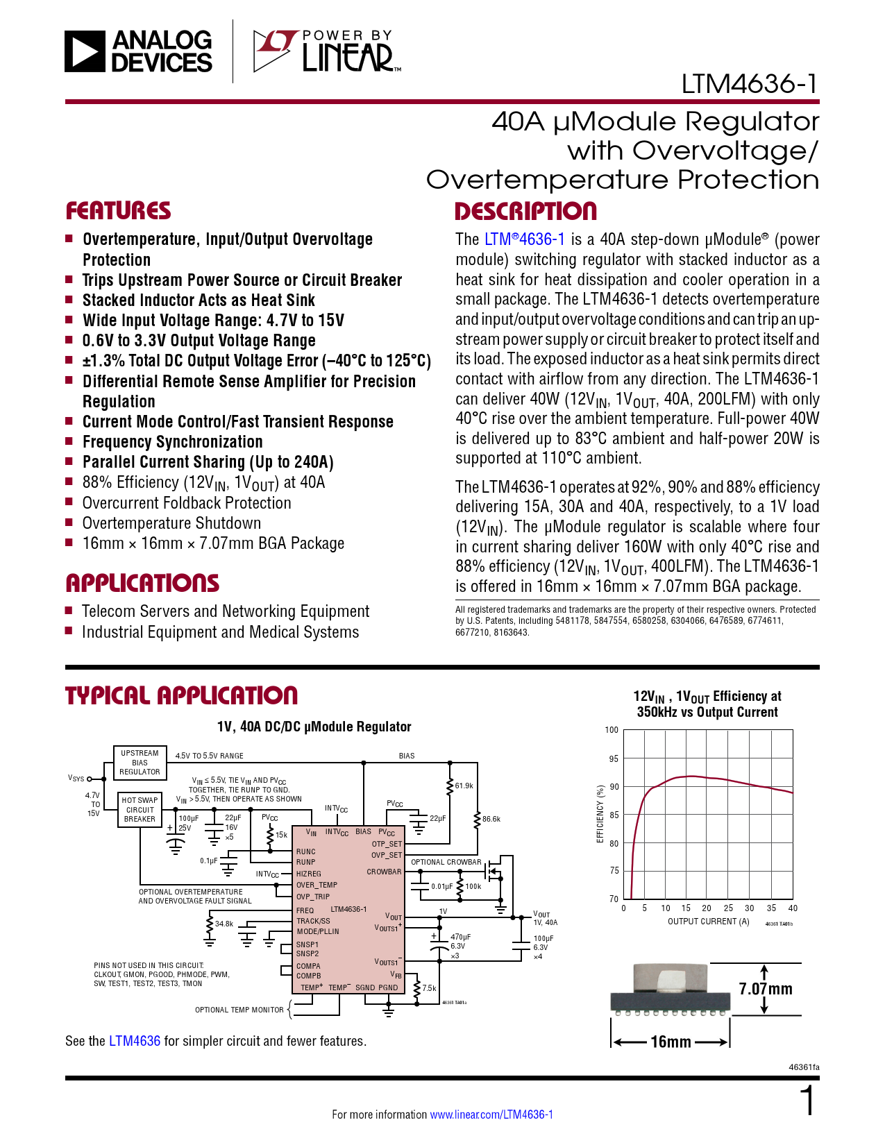 The LTM®4636-1 is a 40A step-down µModule® (power