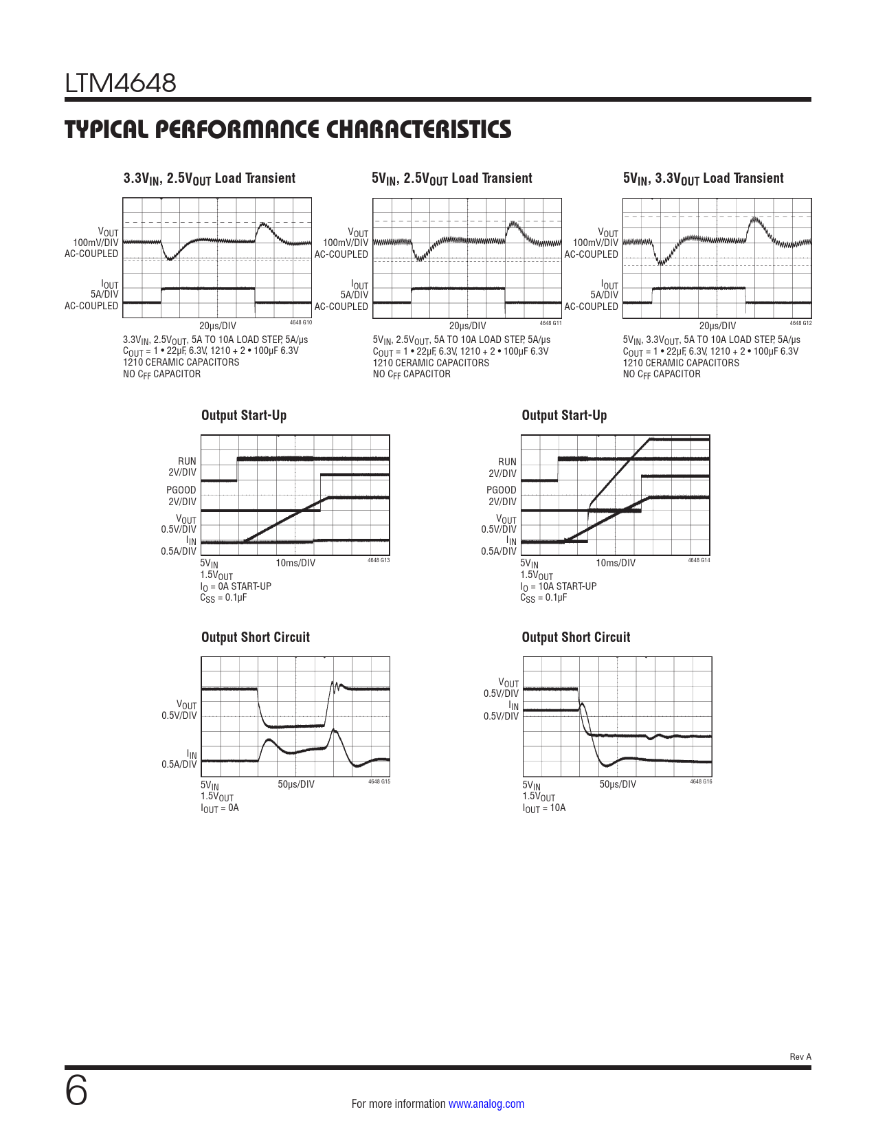 VOUT 0.5V/DIV VOUT IIN 0.5V/DIV 0.5V/DIV IIN 0.5A/DIV 5V 4648 G15 4648 G16 IN 50µs/DIV 5VIN 50µs/DIV 1.5VOUT 1.5VOUT IOUT = 0A IOUT = 10A Rev A 6 For more information www.analog.com Document Outline Features Applications Description Typical Application Absolute Maximum Ratings Order Information Electrical Characteristics Typical Performance Characteristics Pin Functions Block Diagram Operation Applications Information Typical Applications Package Description Typical Application Design Resources Related Parts Features Applications Typical Application Description Absolute Maximum Ratings Order Information Pin Configuration Electrical Characteristics Typical Performance Characteristics Pin Functions Block Diagram Operation Applications Information Package Description Revision History Typical Application Design Resources Related Parts