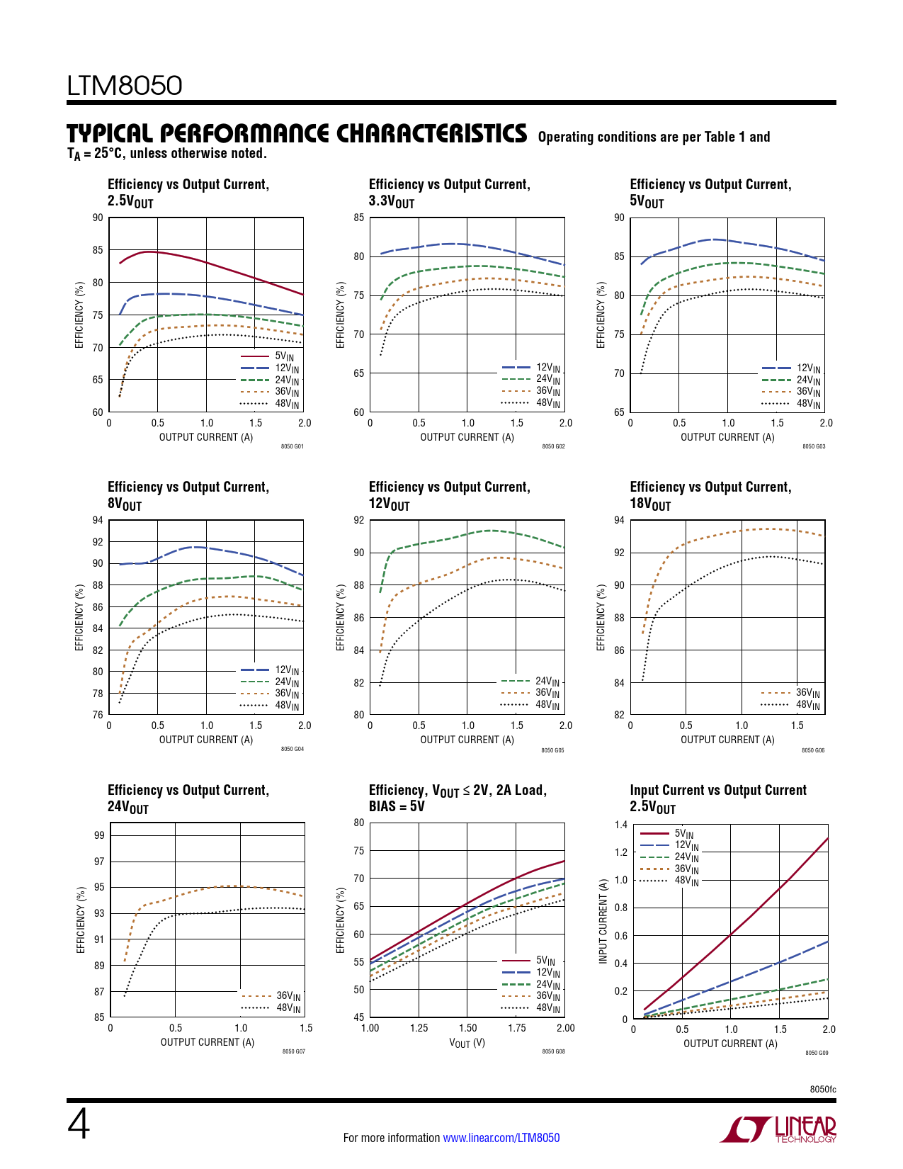 94 92 94 92 90 92 90 88 88 90 86 86 88 84 EFFICIENCY (%) 82 EFFICIENCY (%) 84 EFFICIENCY (%) 86 80 12VIN 24VIN 82 24VIN 84 78 36VIN 36VIN 36VIN 48VIN 48VIN 48VIN 76 80 82 0 0.5 1.0 1.5 2.0 0 0.5 1.0 1.5 2.0 0 0.5 1.0 1.5 OUTPUT CURRENT (A) OUTPUT CURRENT (A) OUTPUT CURRENT (A) 8050 G04 8050 G05 8050 G06