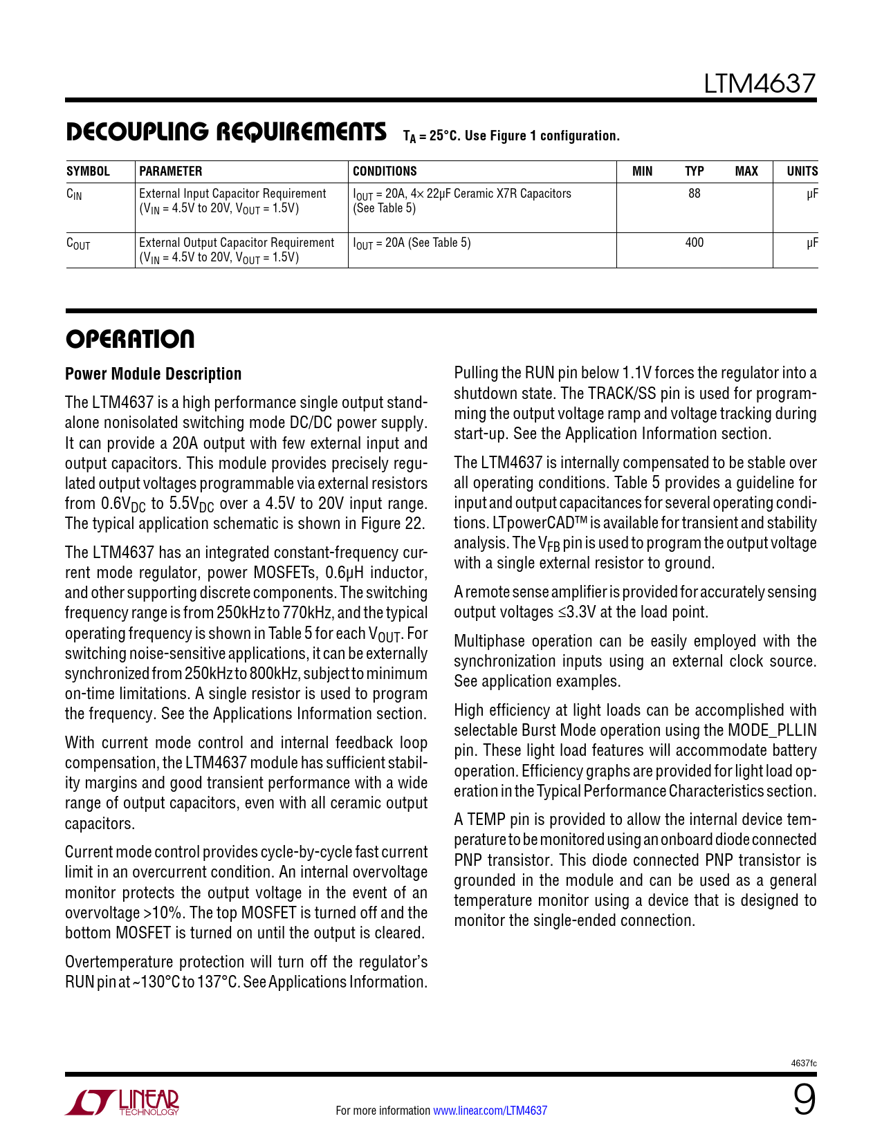 Datasheet LTM4637 (Analog Devices) - 9