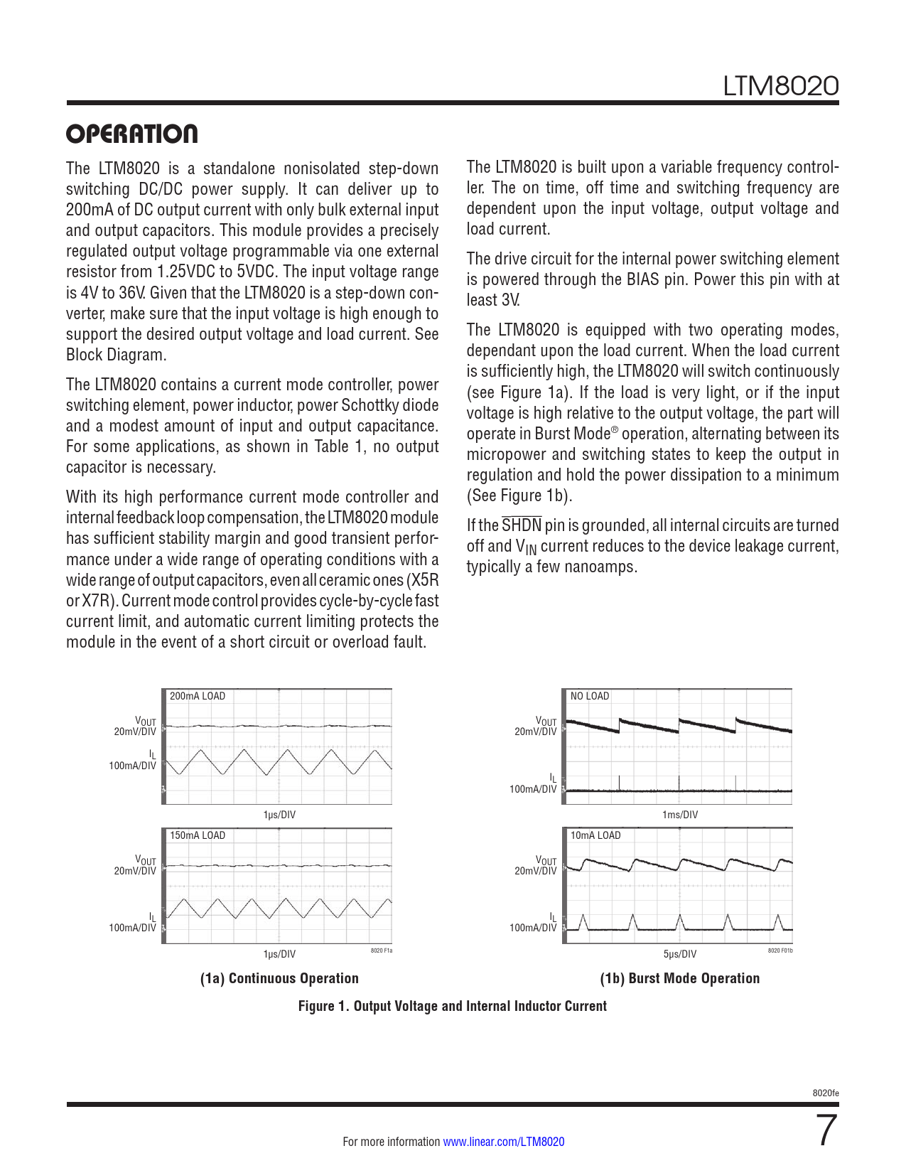 OPERATION. (1a) Continuous Operation. (1b) Burst Mode Operation. Figure 1. Output Voltage and Internal Inductor Current