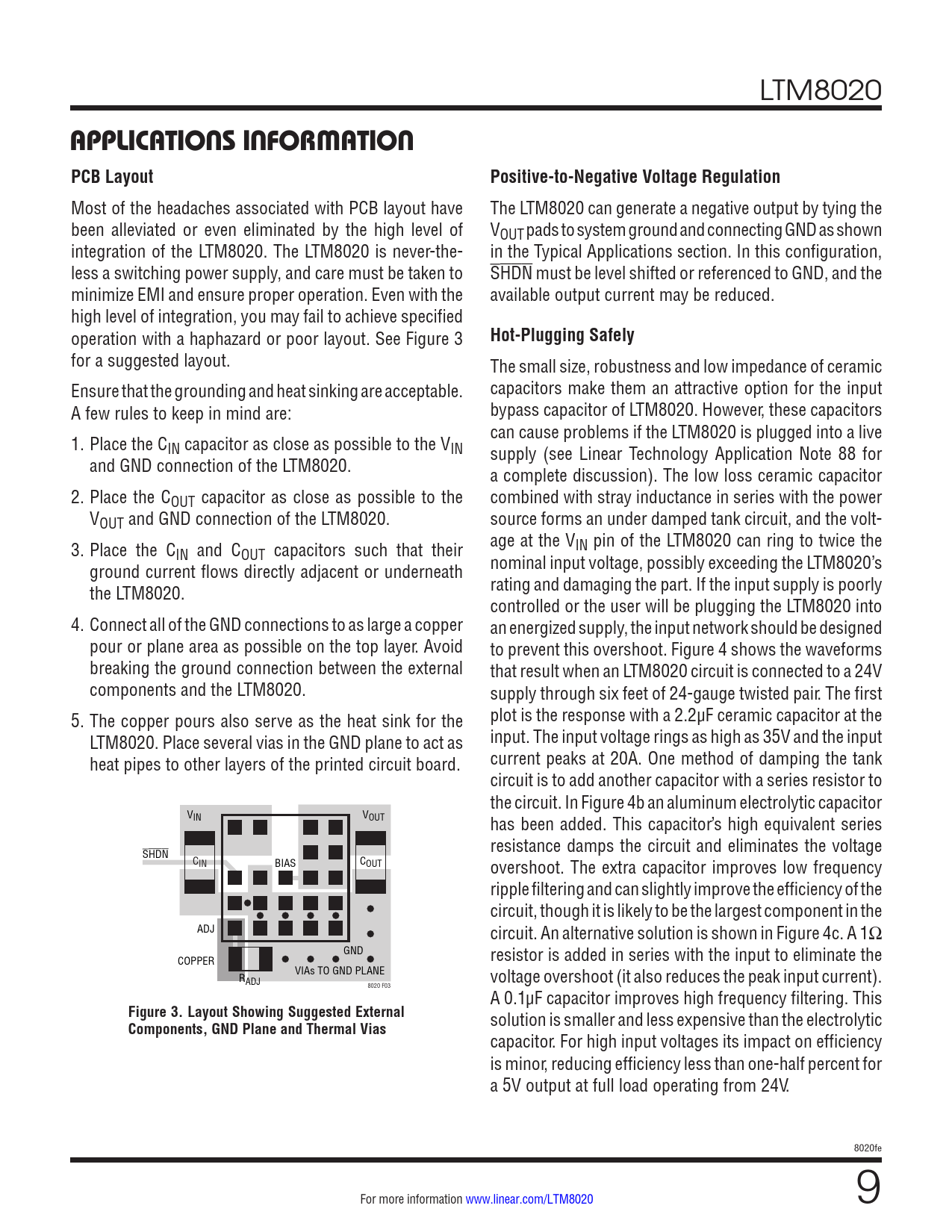 APPLICATIONS INFORMATION. PCB Layout. Positive-to-Negative Voltage Regulation. Hot-Plugging Safely