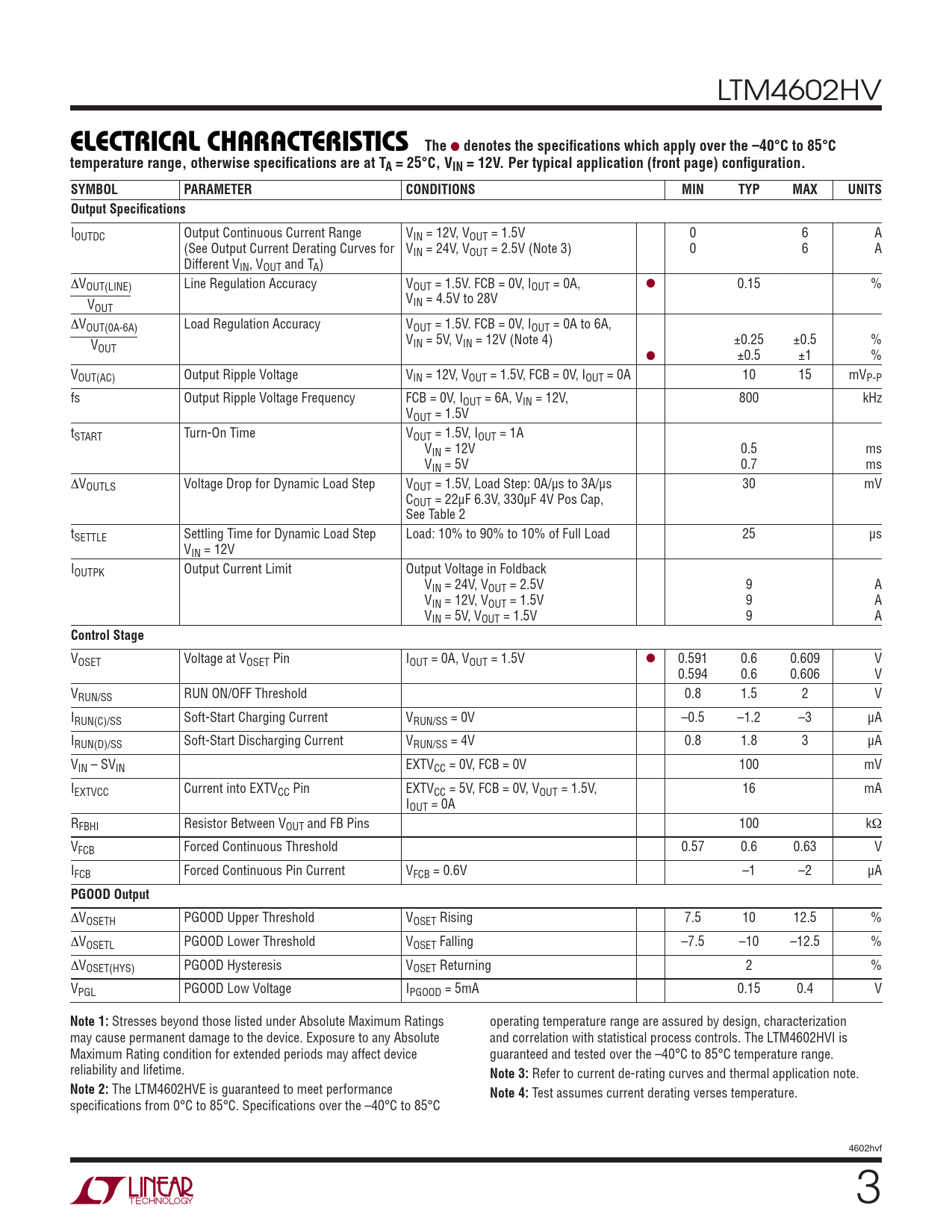 Test assumes current derating verses temperature. specifi cations from 0°C to 85°C. Specifi cations over the –40°C to 85°C 4602hvf 3