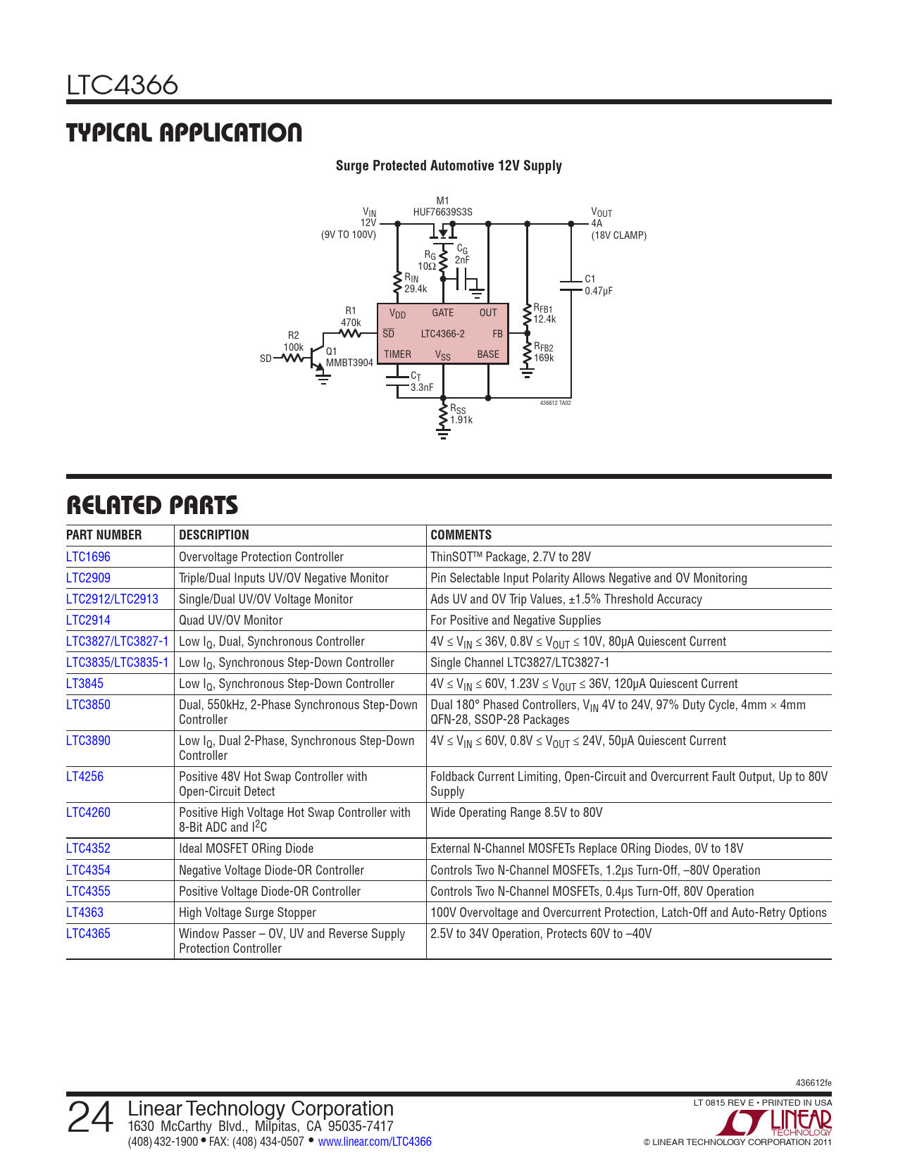 TYPICAL APPLICATION. Surge Protected Automotive 12V Supply. RELATED PARTS PART NUMBER. DESCRIPTION. COMMENTS