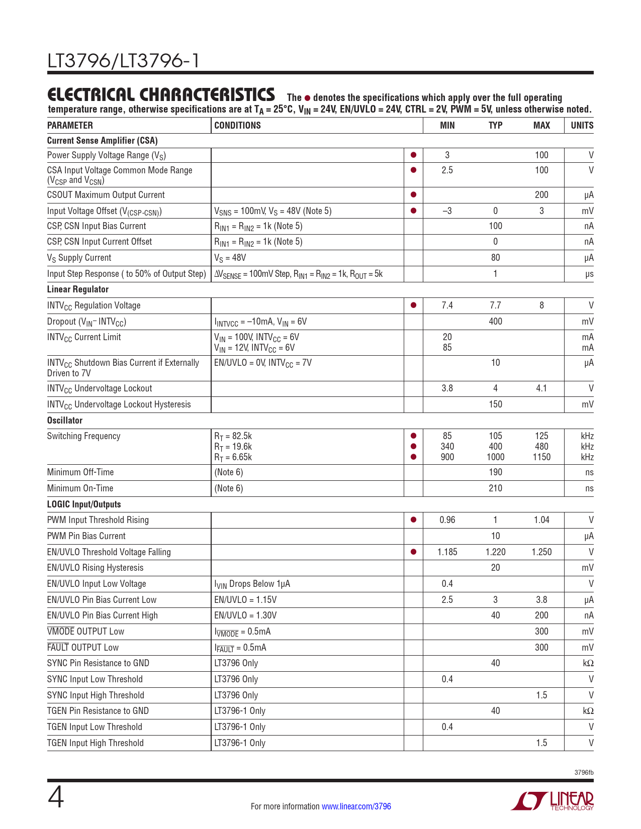 Datasheet LT3796, LT3796-1 (Analog Devices) - 4