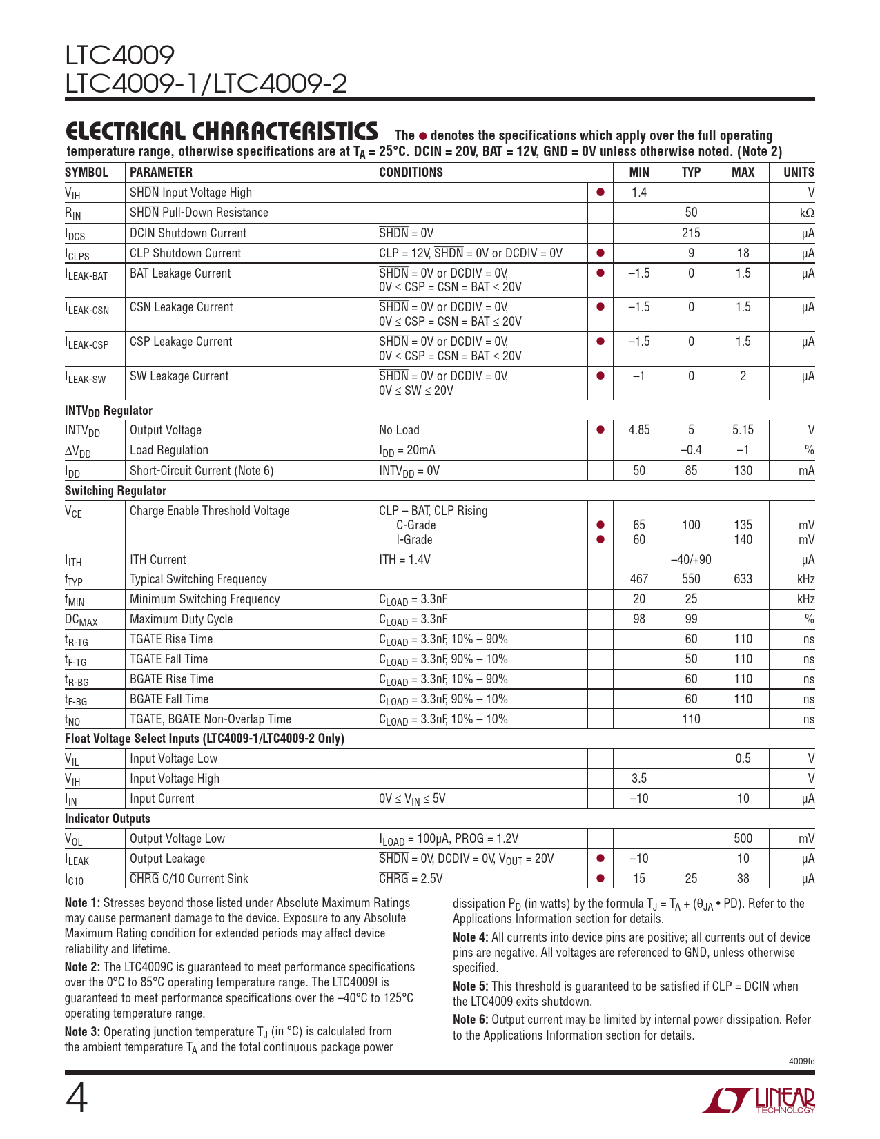 Datasheet LTC4009, LTC4009-1, LTC4009-2 (Analog Devices) - 4