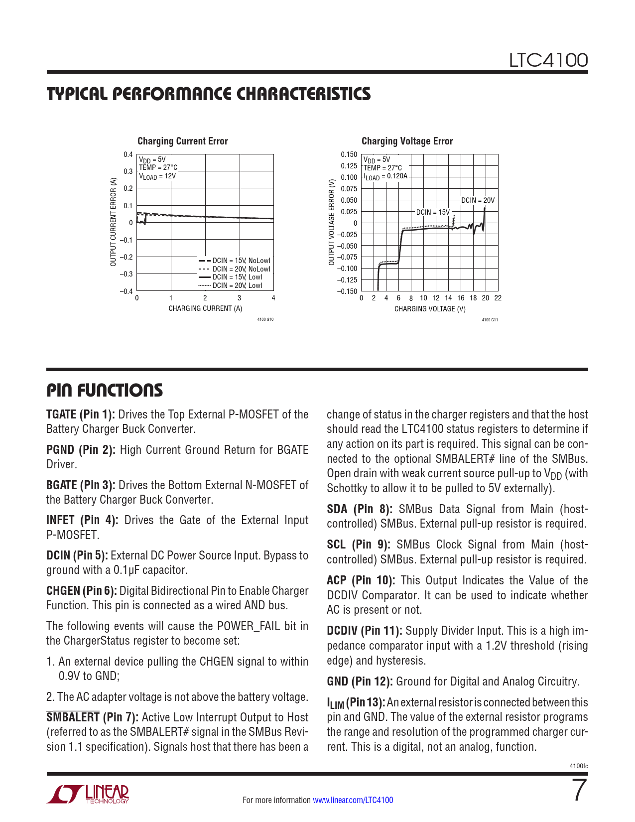 Typical perForMance characTerisTics. Charging Current Error. Charging Voltage Error. pin FuncTions TGATE (Pin 1):