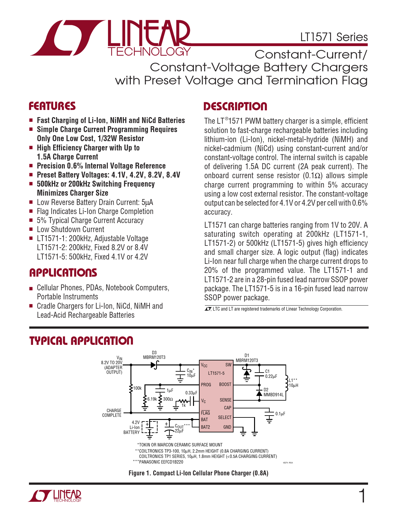 LT1571 Series Constant-Current/ Constant-Voltage Battery Chargers with Preset Voltage and Termination Flag