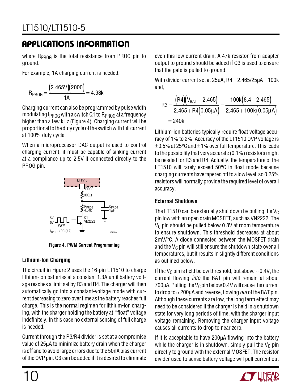 APPLICATIONS INFORMATION. External Shutdown. Figure 4. PWM Current Programming. Lithium-Ion Charging