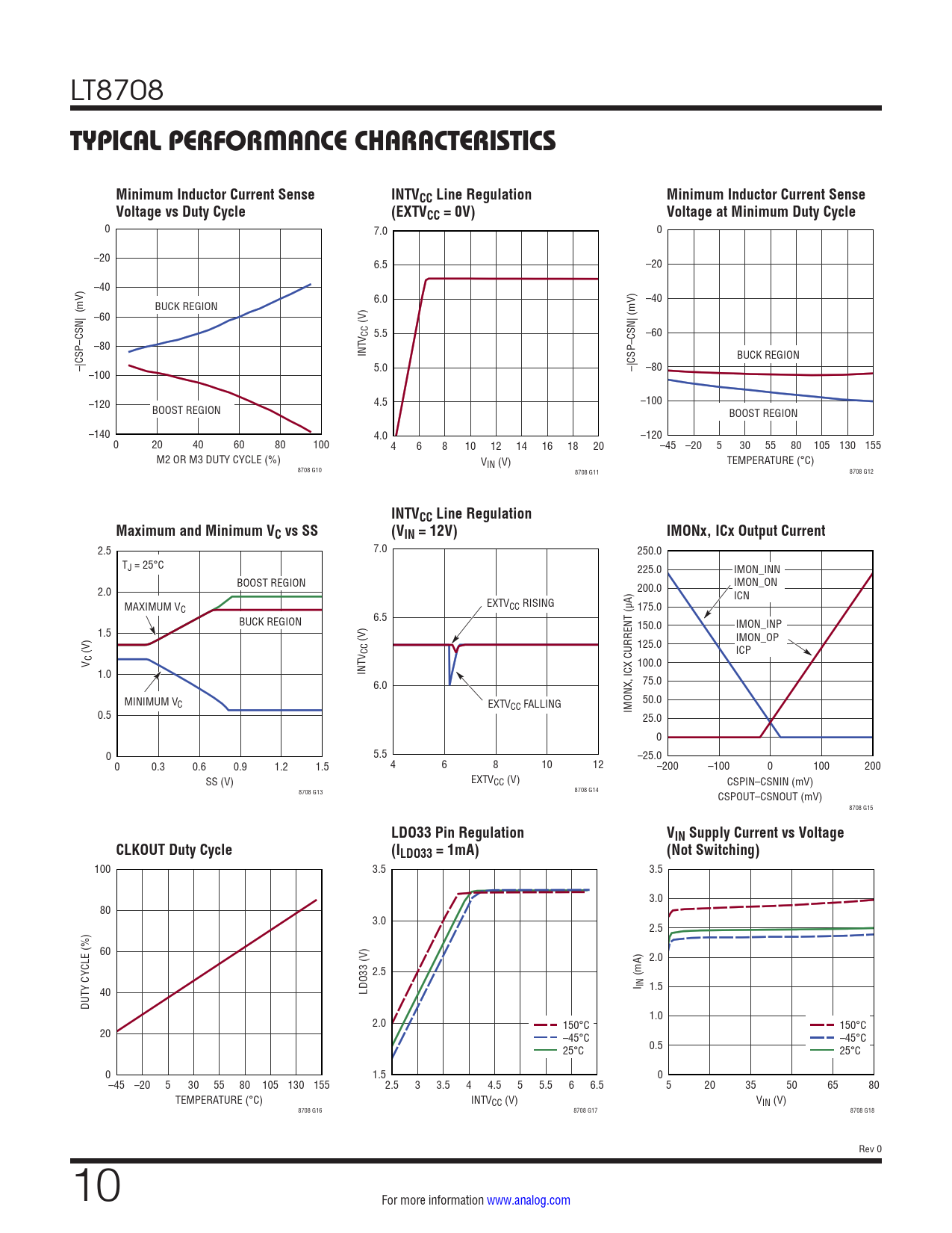 TYPICAL PERFORMANCE CHARACTERISTICS. Minimum Inductor Current Sense. INTVCC Line Regulation. Voltage vs Duty Cycle
